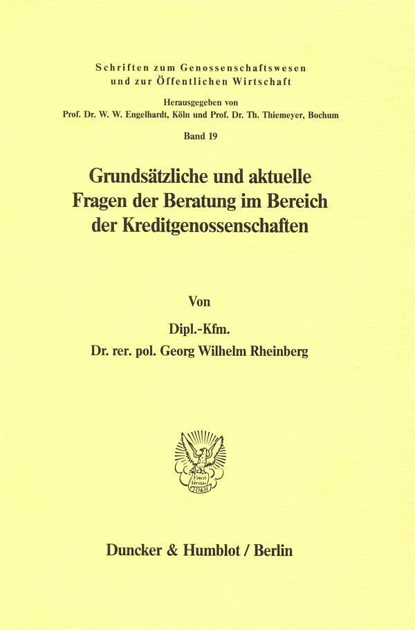 Grundsätzliche und aktuelle Fragen der Beratung im Bereich der Kreditgenossenschaften.