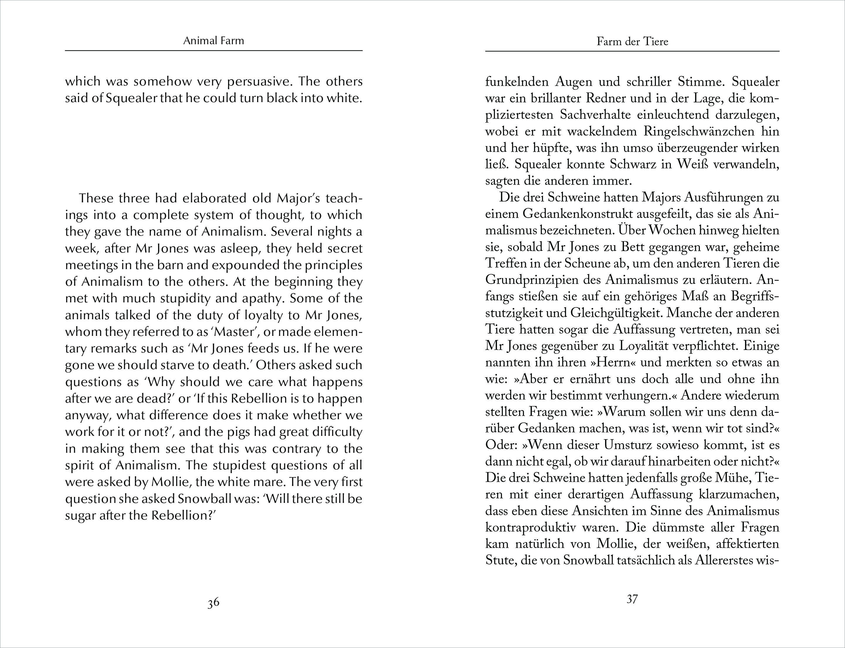 Man beraubt sie der Früchte ihrer Arbeit, sperrt sie ein und beutet sie aus. Die Tiere auf dem Gutshof haben genug und proben den Aufstand für eine bessere Welt, in der alle Tiere gleich und frei sind. Doch bald zeigt sich: Gleich heißt nicht gleich, und Freih...