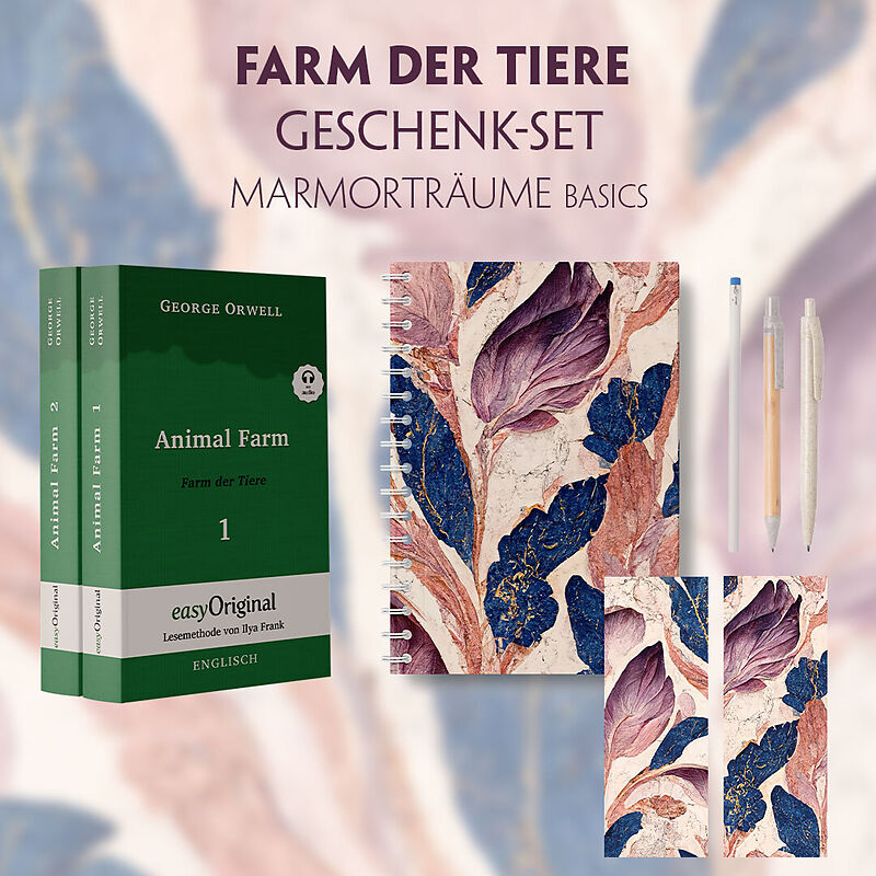 Farm der Tiere Geschenkset - 2 Teile (Buch + Audio-Online) + Marmorträume Schreibset Basics
