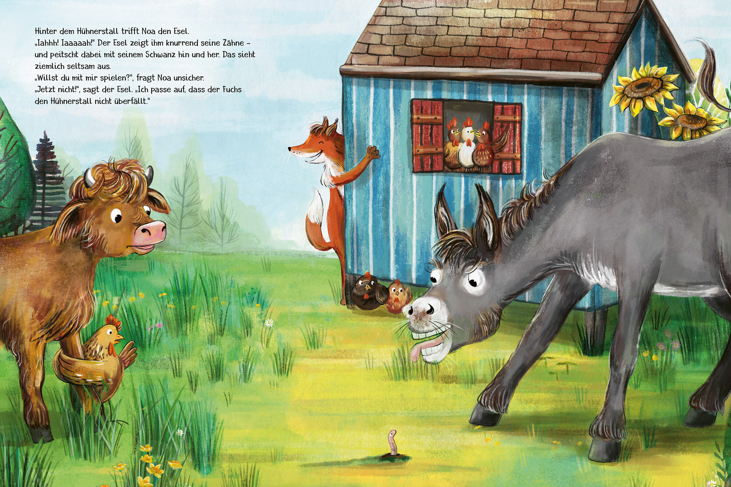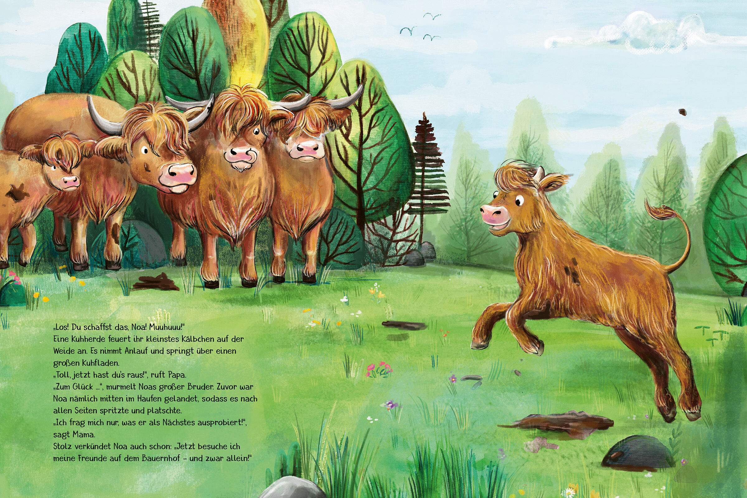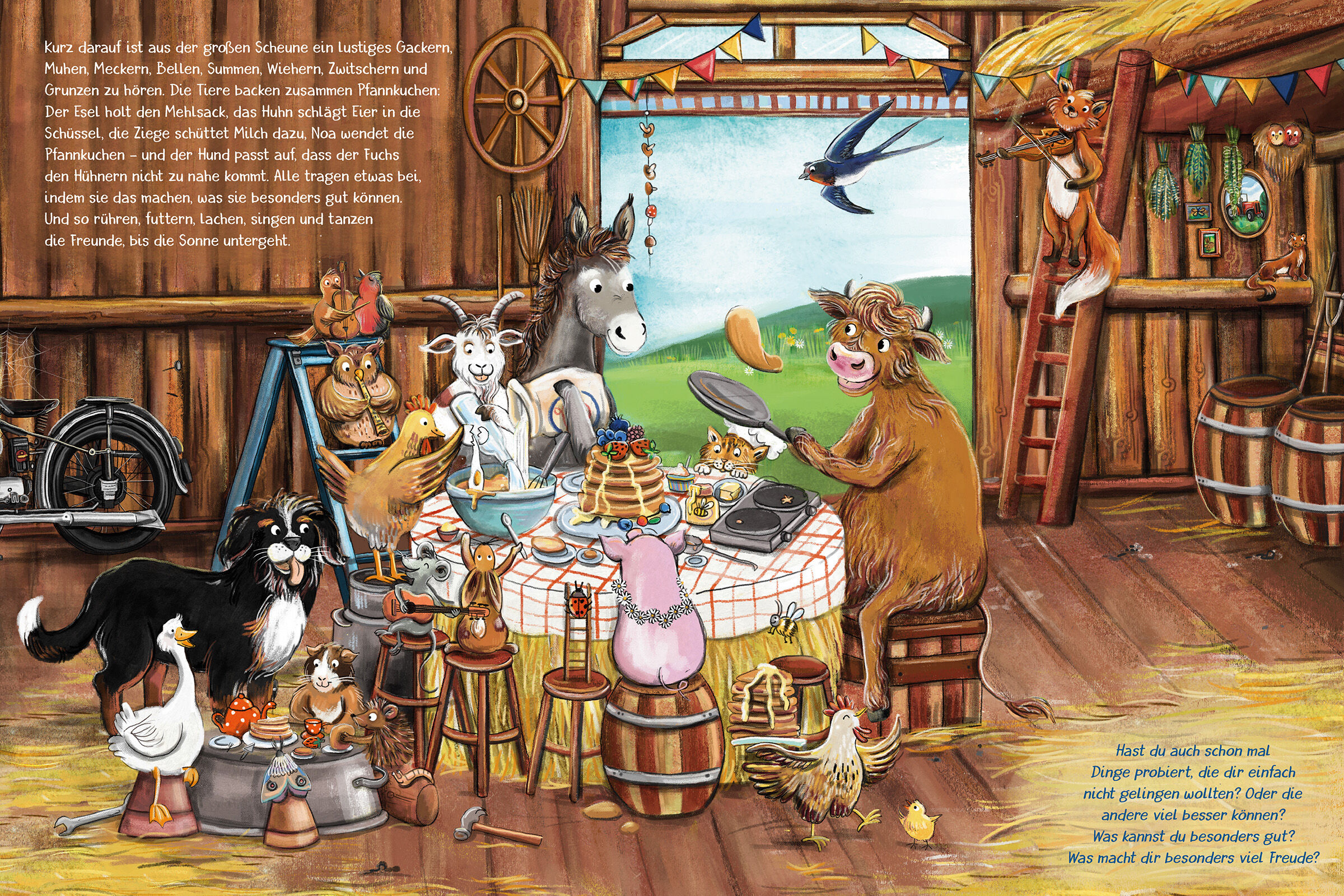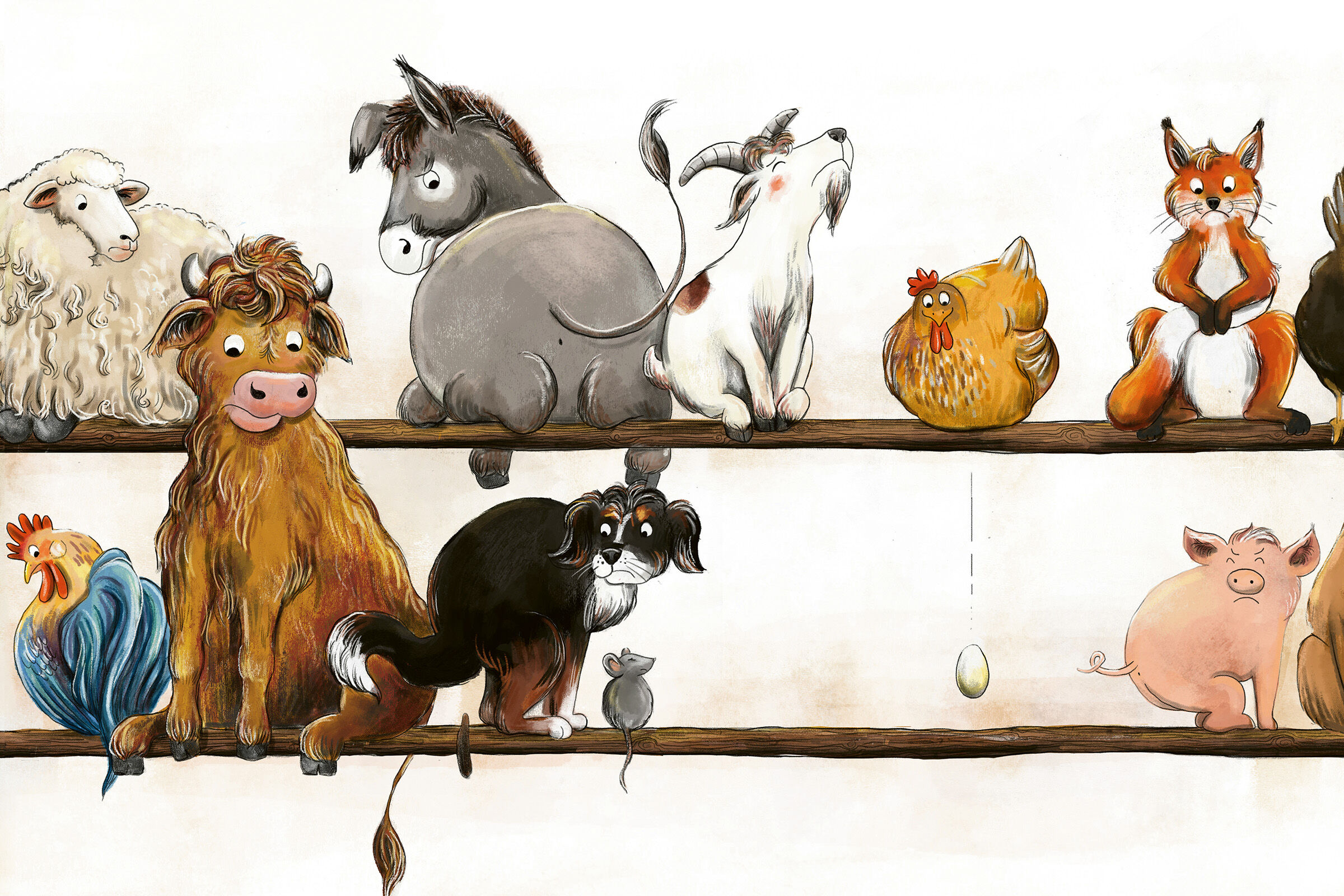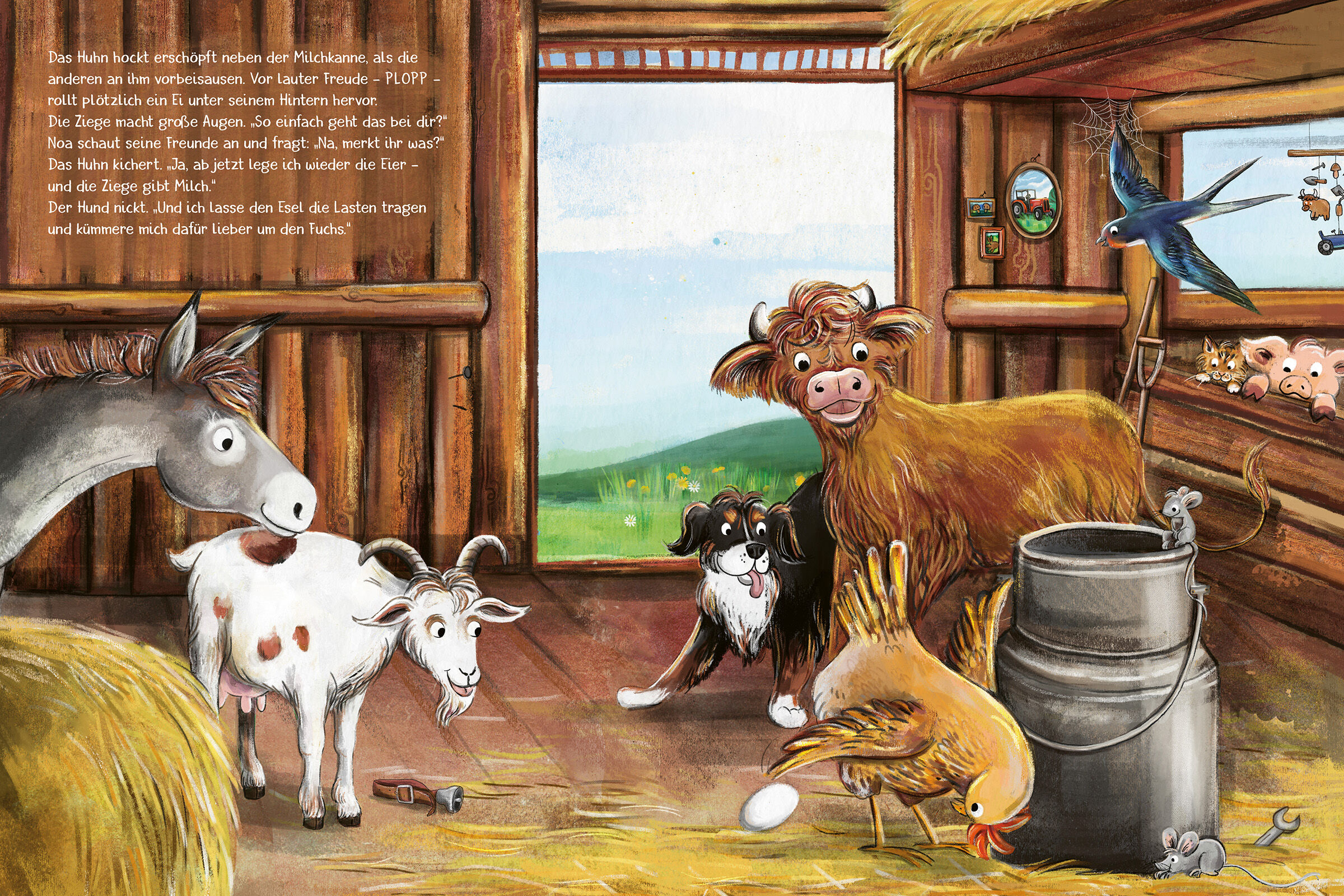 Jeder kann was anderes gut! Das Kälbchen besucht seine Freunde. Doch das Huhn hat keine Zeit zum Spielen. Es hockt gackernd auf einer Blechkanne und versucht, Milch zu geben. Die Ziege sitzt auf der Stange im Hühnerstall und probiert, ein Ei zu legen. Auch die...