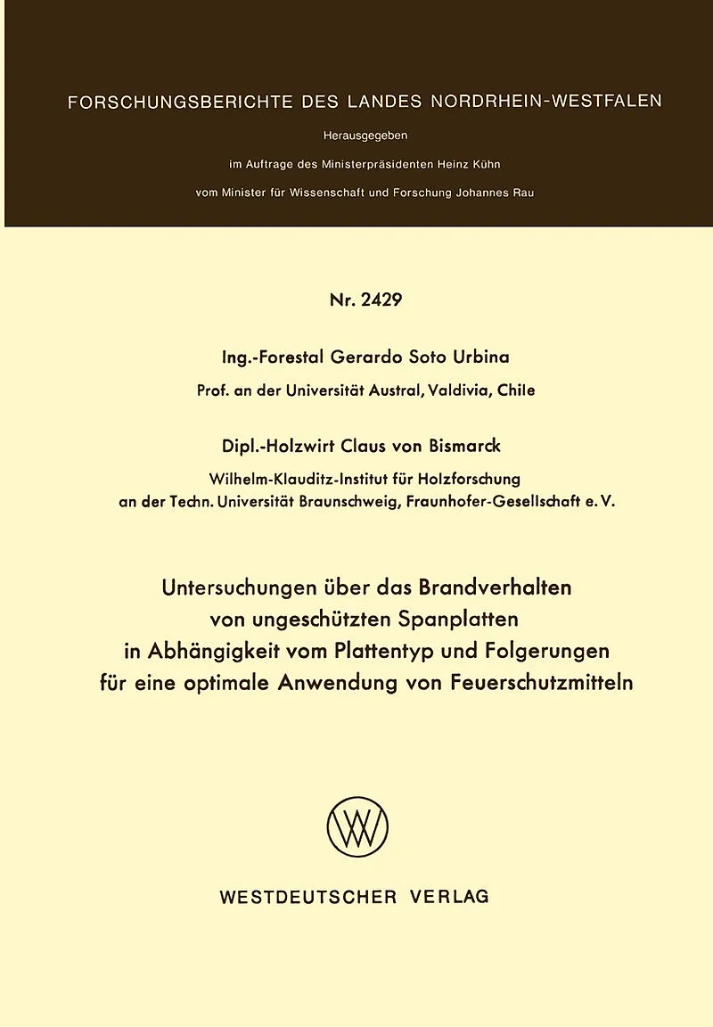 Inhalt 1. Einleitung und Problemstellung.- 2. Versuchsmaterial.- 2.1 Plattenherstellung.- 2.2 Schutzmittelanwendung.- 3. Prüfmethode.- 3.1 WKI-Brandschacht.- 3.2 Prüfkriterien.- 4. Prüfergebnisse.- 4.1 Brandverhalten ungeschützter Flachpreßplatten in Abhängigk...