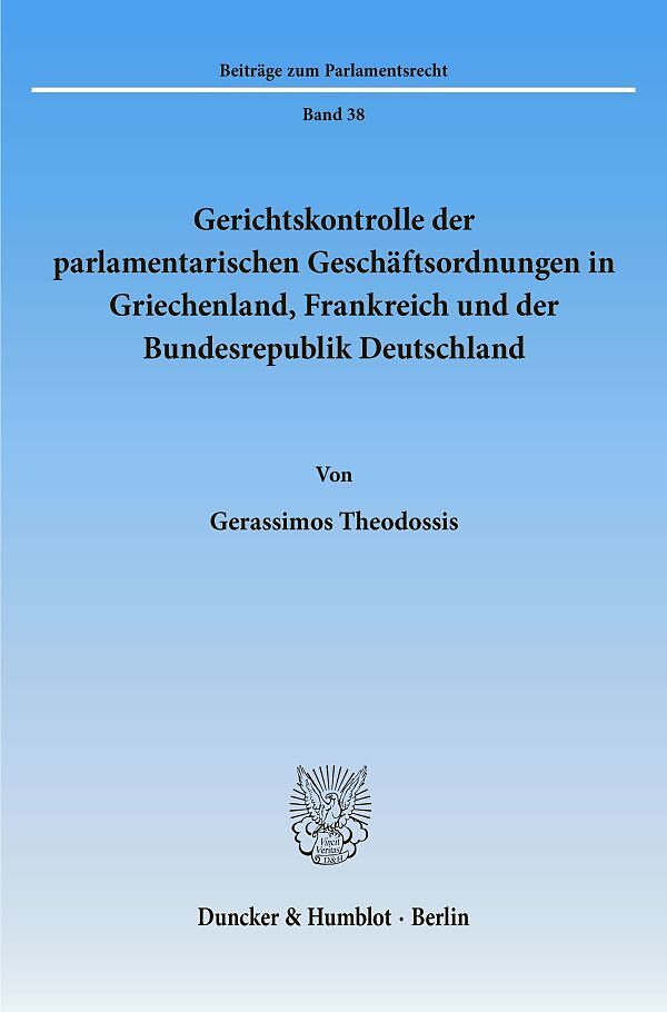 Gerichtskontrolle der parlamentarischen Geschäftsordnungen in Griechenland, Frankreich und der Bundesrepublik Deutschland.