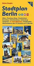 Stadtplan vom Bereich des Berliner S-Bahnrings (im Süden bis Platz der Luftbrücke), Maßstab 1 : 21 000. Rückseite: Übersichtskarte von Berlin mit allen 98 Ortsteilen und den 12 Bezirken. S- und U-Bahn-Netzspinne, Straßenverzeichnis, Kurzlegende deutsche/englis...