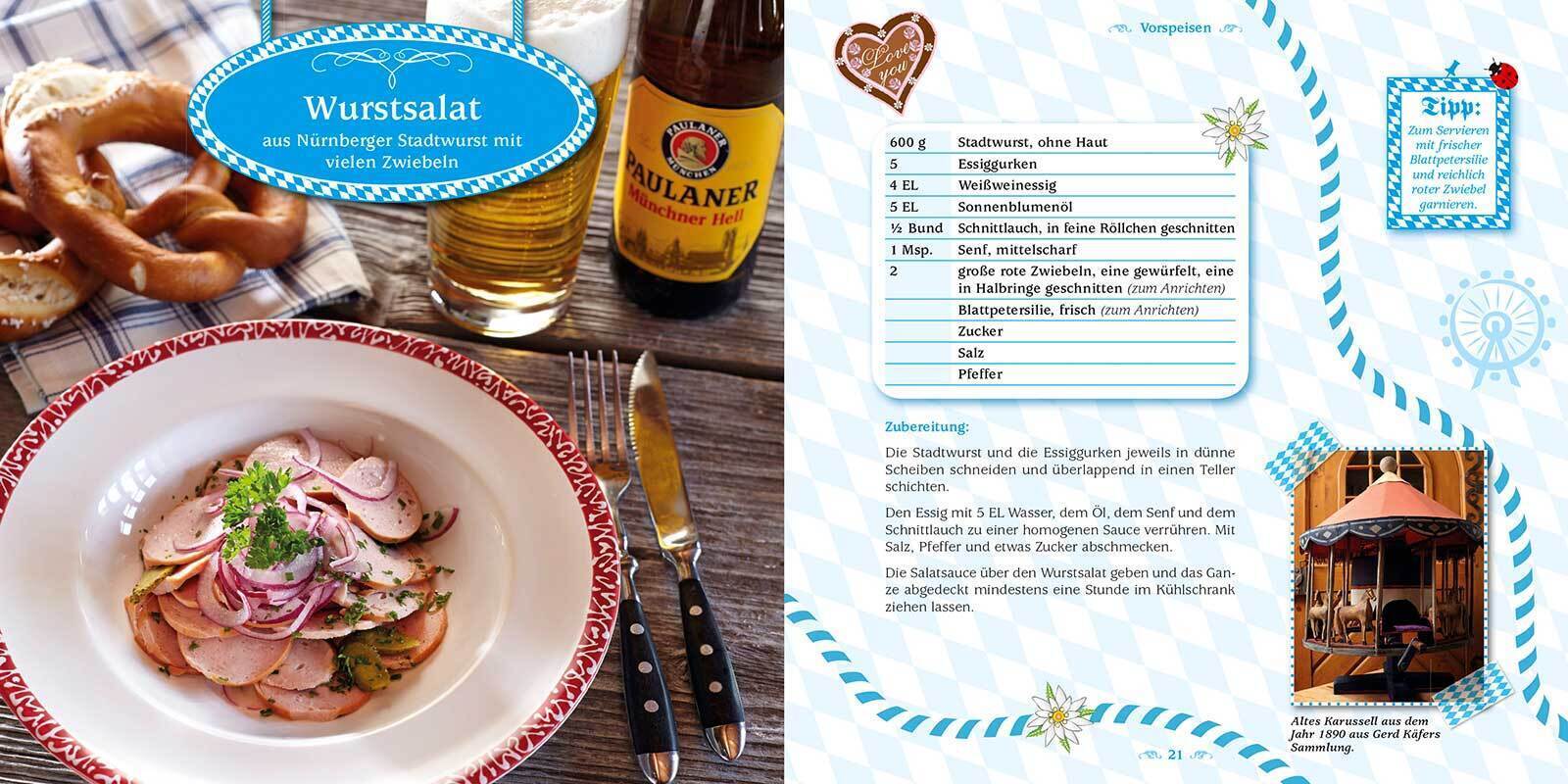 Spitzen Preis-Leistungs-Verhältnis Dieses Buch bietet nicht nur wirklich gute Rezeptideen aus der herzhaften bayerischen Küche, sondern ist auch einfach nett und liebevoll "bayerisch" gestaltet: Bayernrauten, Edelweiß, Marienkäfer und kleine Brezeln schmücken jede Seite. Die appetitlichen Rezeptfotos wecken Heißhunger auf die herzhafte bayerische Küche. Dazu gibt es Zubereitungstipps vom Profi Gerd Käfer, ein Wies'n-ABC ein Wies'n-Blitzkurs und vieles mehr rund ums Oktoberfest. Und das alles zu einem Spitzenpreis! Ein gelungenes Buch, das sich ideal zum Mitbringsel zur Oktoberfest-Party eignet, aber auch als Geschenk für Kenner und Liebhaber der bayerischen und alpenländischen Küche. Getreu dem Motto "Es gibt nix Besseres als was Guads!" serviert "Gourmet-Papst" Gerd Käfer die leckersten Schmankerl seiner über 40-jährigen Wiesn-Erfahrung und macht Appetit auf das berühmteste und größte Volksfest der Welt. Klassiker wie das Wiesn-Hendl, Kalbshaxn oder Schwammerlsuppe dürfen dabei nicht fehlen. Aber natürlich bietet Europas bester Tafeldecker mit vegetarischen Kasspatzn, Saurem Lüngerl oder Bayrisch Creme auch Leckereien, die zu einem zünftigen Oktoberfest einfach dazugehören und doch nicht alltäglich sind. Außerdem macht er Heißhunger auf süße Verführungen wie Kaiserschmarrn, Mohnbuchteln oder Apfelkiachl. Dazu gibt es Deko-Tipps, aktuelle Infos und Historisches zum Schmunzeln und Weitererzählen.