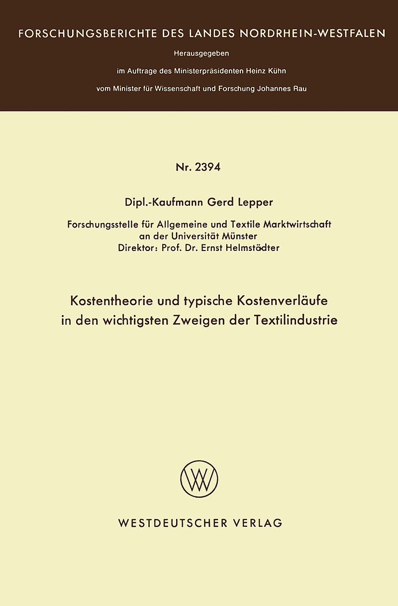 Kostentheorie und typische Kostenverläufe in den wichtigsten Zweigen der Textilindustrie