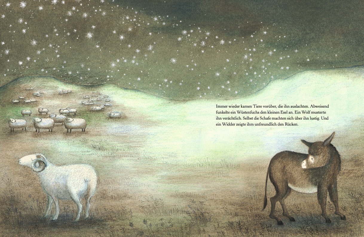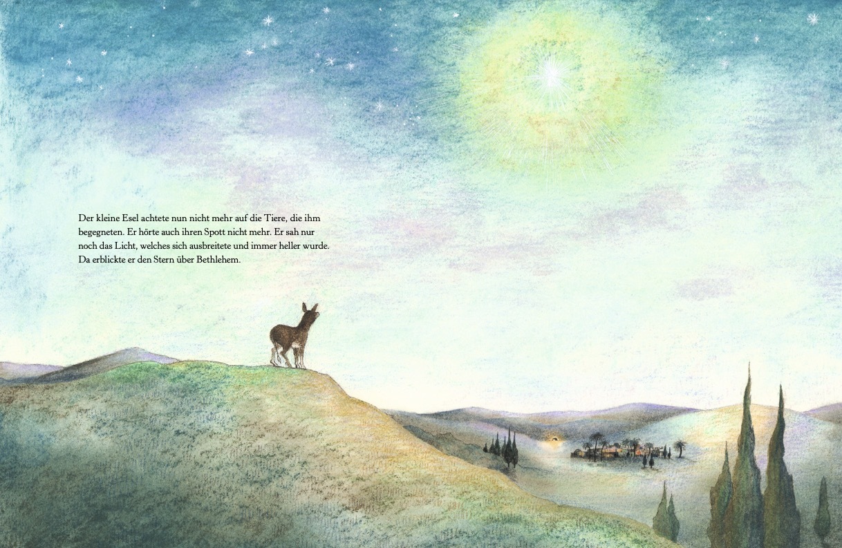 Eine Weihnachtsgeschichte mit stimmungsvollen Illustrationen von Bernadette. Ein kleiner Esel macht sich auf den mühsamen Weg nach Bethlehem. Am Ende wird er für seinen Mut und seinen tiefen Glauben belohnt: Er erfährt, dass der neue König auch dem geringsten...
