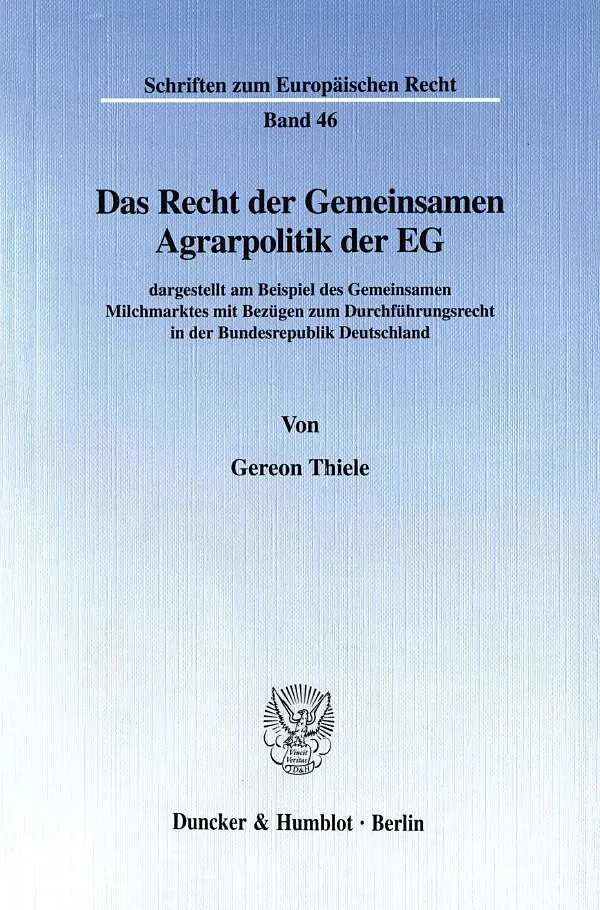 Die Gemeinsame Agrarpolitik (GAP) der EG ist ein Marktbereich, in den in großem Umfang politisch lenkend eingegriffen wird. Der EG-Vertrag bestimmt die wesentlichen Ziele und Handlungsmaxime, auf denen die eigentlichen Entscheidungen, die durch das sekundärrec...
