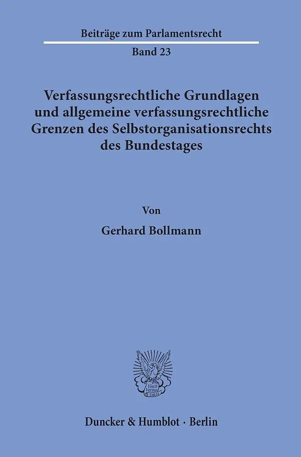 Verfassungsrechtliche Grundlagen und allgemeine verfassungsrechtliche Grenzen des Selbstorganisationsrechts des Bundestages.
