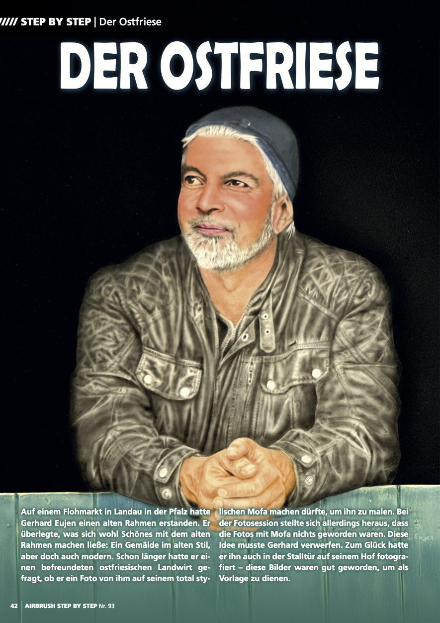Airbrush Step by Step 93: Starke Charaktere Step by Steps: Rennfahrer-Porträt von Dennis Mott Ostfriesen-Porträt von Gerhard Eujen Nasen-Studie von Markus Ehmke Frauenakt von Mitya Ka Interviews: Die Gewinner des Internationalen Sparmax Airbrush-Wettbewerbs 20...