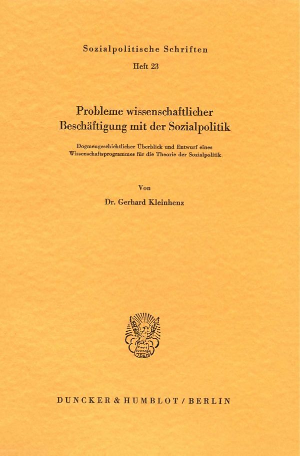 Probleme wissenschaftlicher Beschäftigung mit der Sozialpolitik.