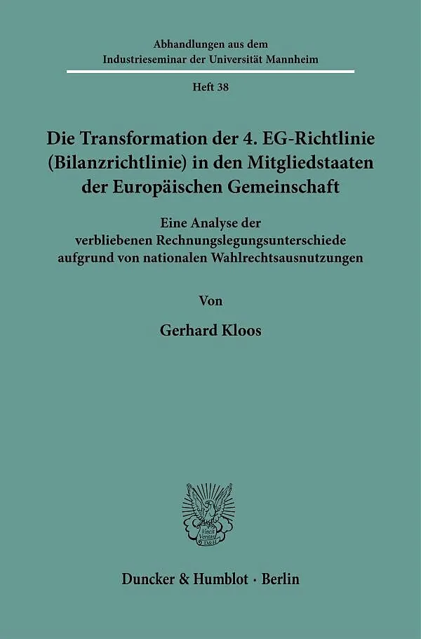 Die Transformation der 4. EG-Richtlinie (Bilanzrichtlinie) in den Mitgliedstaaten der Europäischen Gemeinschaft.