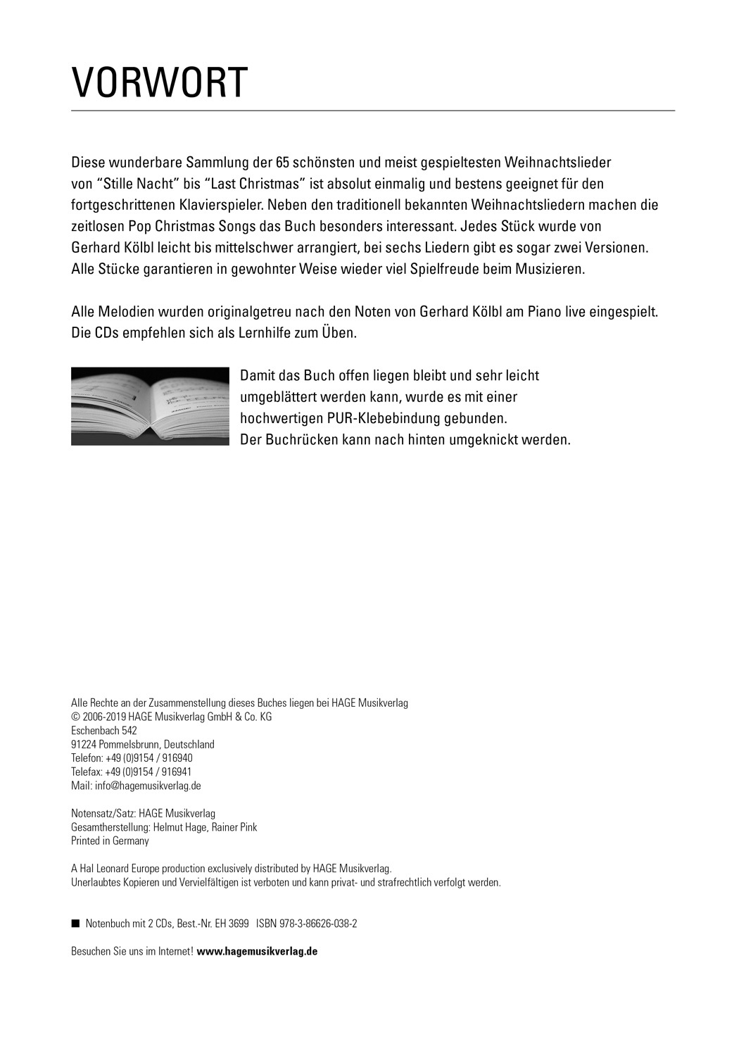 Diese wunderbare Sammlung der 65 schönsten und meist gespieltesten Weihnachtslieder von "Stille Nacht" bis "Last Christmas" ist absolut einmalig und bestens geeignet für den fortgeschrittenen Klavierspieler. Neben den traditionell bekannten Weihnachtsliedern m...