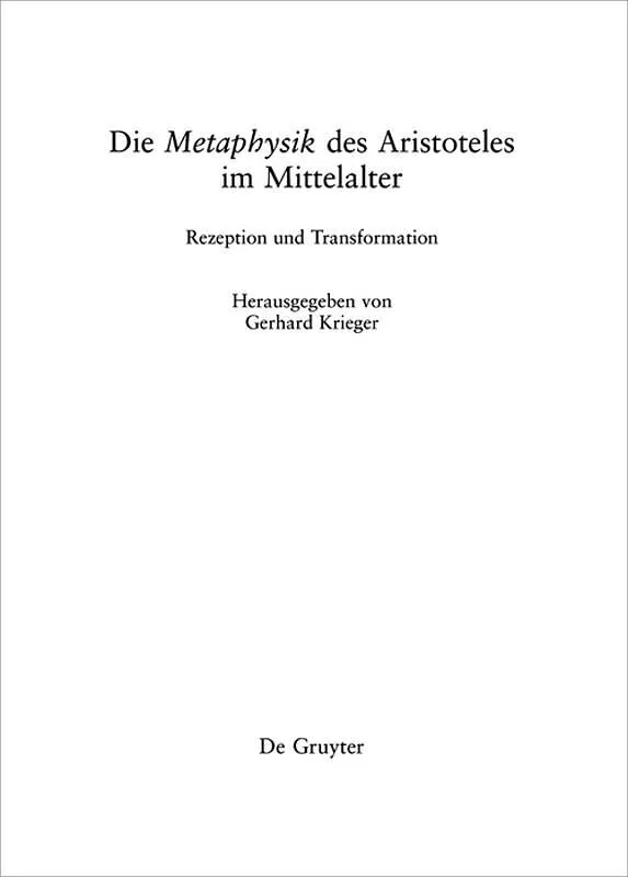 The present volume attends to the history of Aristotle's text called Metaphysics in the Latin Middle Ages. At the same time, the historical reception of the Aristotelian metaphysics in the Middle Ages in its significance for the metaphysical thought itself in...