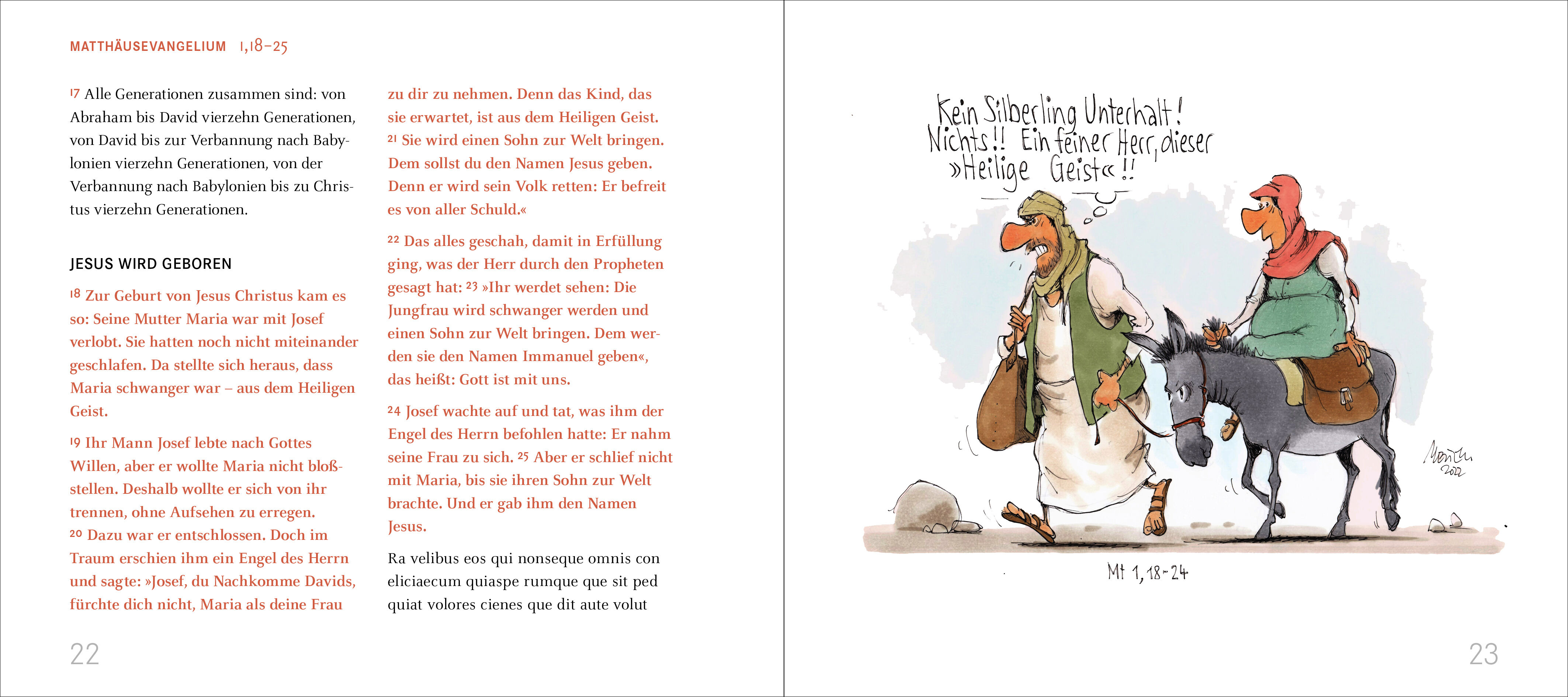 Zentrale Bibelgeschichten in scharfsinnigen Karikaturen Josef, der sich über die Zahlungsmoral des Heiligen Geistes beschwert, Maria, die sich von den drei Weisen lieber frische Windeln gewünscht hätte oder Petrus als Pionier des Schwimmens. Gerhard Mester int...