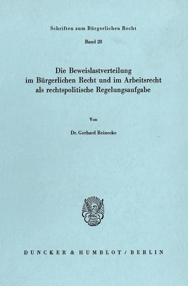 Die Beweislastverteilung im Bürgerlichen Recht und im Arbeitsrecht als rechtspolitische Regelungsaufgabe.
