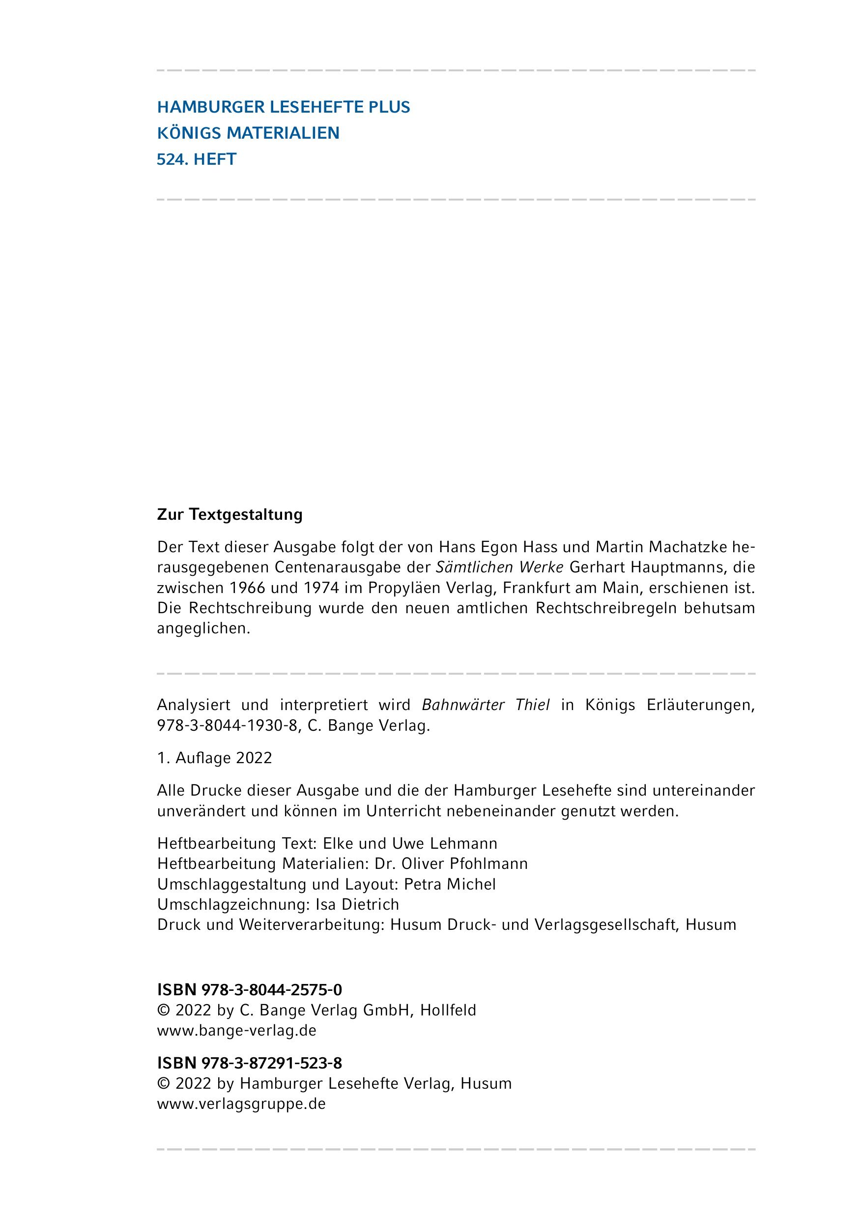 Hauptmanns novellistische Studie "Bahnwärter Thiel" thematisiert die Hilflosigkeit der Schwachen in der Ständegesellschaft und die Bedrohung durch die Industrialisierung. Die bewährten Hamburger Lesehefte + Königs Materialien in einem Band. Das zeich...