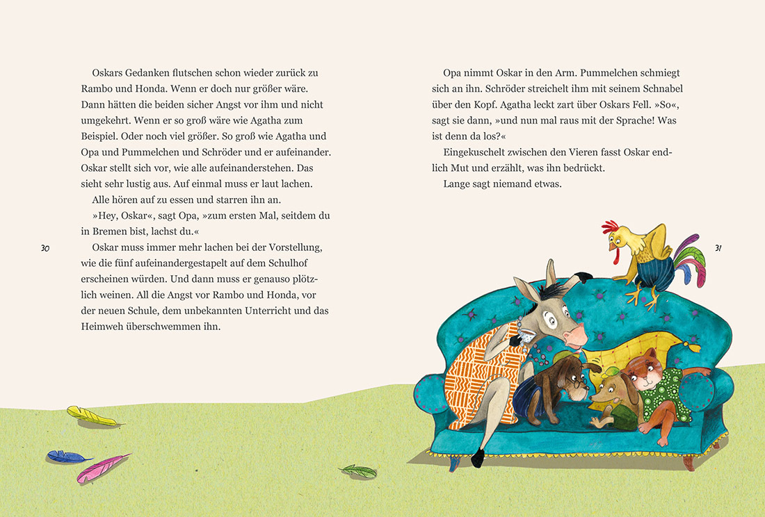 Die Bremer Stadtmusikanten - Was keiner weiß: sie waren sogar zu fünft! Der kleine Hund Oskar muss zu seinem Opa nach Bremen ziehen. In seiner neuen Klasse wird er von zwei aufgeblasenen Kötern gemobbt. Opa ist ihm dabei keine große Hilfe, er und seine Kollege...