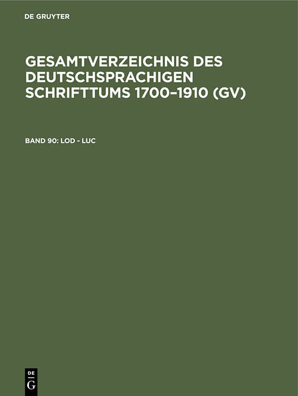 Frontmatter -- Gesamtverzeichnis des deutschsprachigen Schrifttums (GV) 1700 -1910. Teil 1 -- Gesamtverzeichnis des deutschsprachigen Schrifttums (GV) 1700 -1910. Teil 2