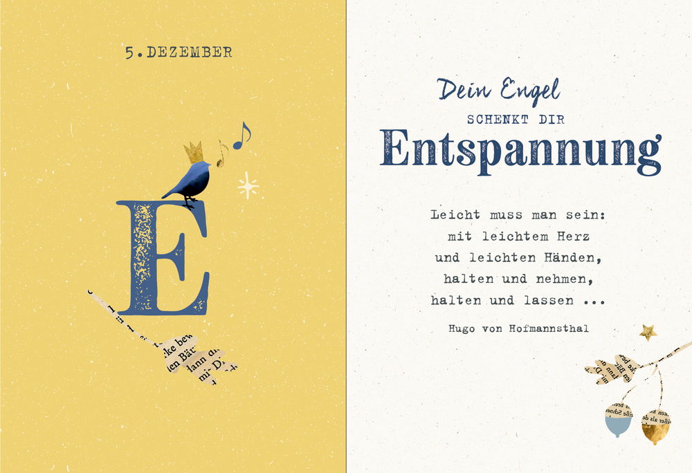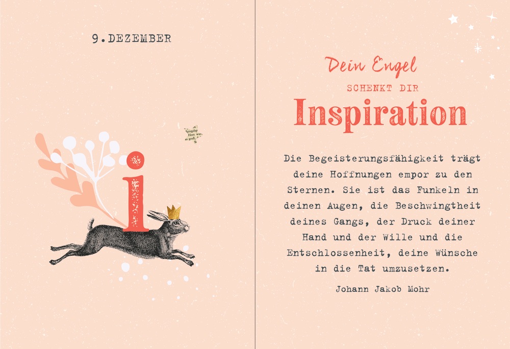 Zauberhaftes Geschenkset mit Engelfigur aus Holz und Büchlein mit 24 inspirierenden Texten. Ein ganz persönlicher Wegbegleiter durch die Adventszeit. Autorentext Christina Kölsch ist Grafikdesignerin, Buchgestalterin und Illustratorin. Ihr Illustrationsstil i...