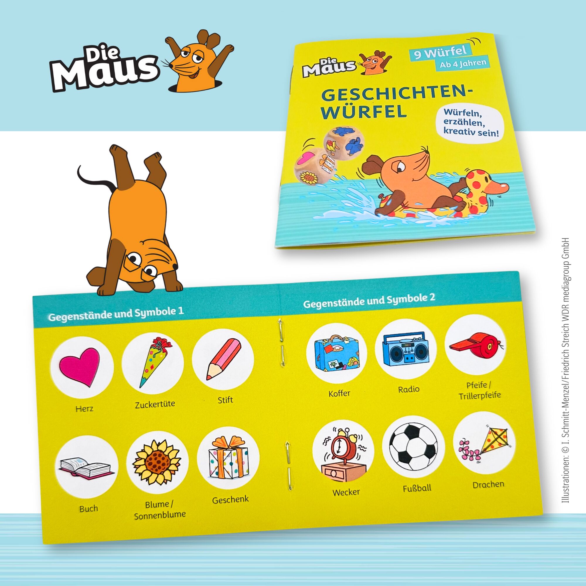 Tauche ein in die Welt der Maus! Würfle und erfinde mit den Motiven fantasievolle, aufregende oder witzige Geschichten. Ein Würfelvergnügen für alle! Spielerisch fördern: Sprechen und Zuhören Ausdrucksvermögen Kreativität und Fantasie Soziale Kompetenz Jeder ...