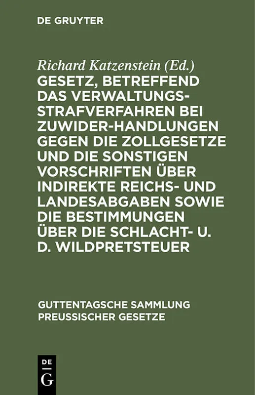 Frontmatter -- Inhaltsverzeichnis -- Verzeichnis der Abkürzungen -- Vorbemerkungen -- Gesetz, betreffend das Verwaltungsstrafverfahren bei Zuwiderhandlungen gegen die Zollgesetze und die sonstigen Vorschriften über indirekte Reichs- und Landesabgaben sowie die...