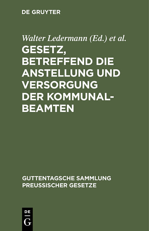 Gesetz, betreffend die Anstellung und Versorgung der Kommunalbeamten