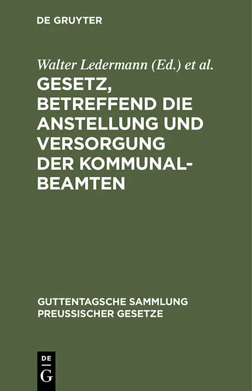 Frontmatter -- Aus der Vorrede zur ersten Auflage -- Vorrede zur zweiten Auflage -- Inhaltsverzeichnis -- Abkürzungen -- I. Einleitung -- II. Text des Gesetzes -- III. Kommentar -- IV. Ausführungsanweisung vom 12. Oktober 1899 -- V. Anhang -- VI. Sachregister ...