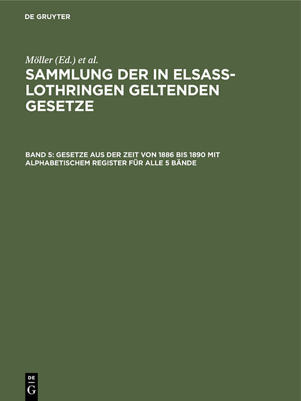 Frontmatter -- Vorwort -- Inhalt -- Abkürzungen -- Sachliche Uebersicht der in Band V enthaltenen Gesetze -- Gesetze aus den Jahren 1886 bis 1890. Part 1 -- Gesetze aus den Jahren 1886 bis 1890. Part 2 -- Gesetze aus den Jahren 1886 bis 1890. Part 3 -- Gesetze...