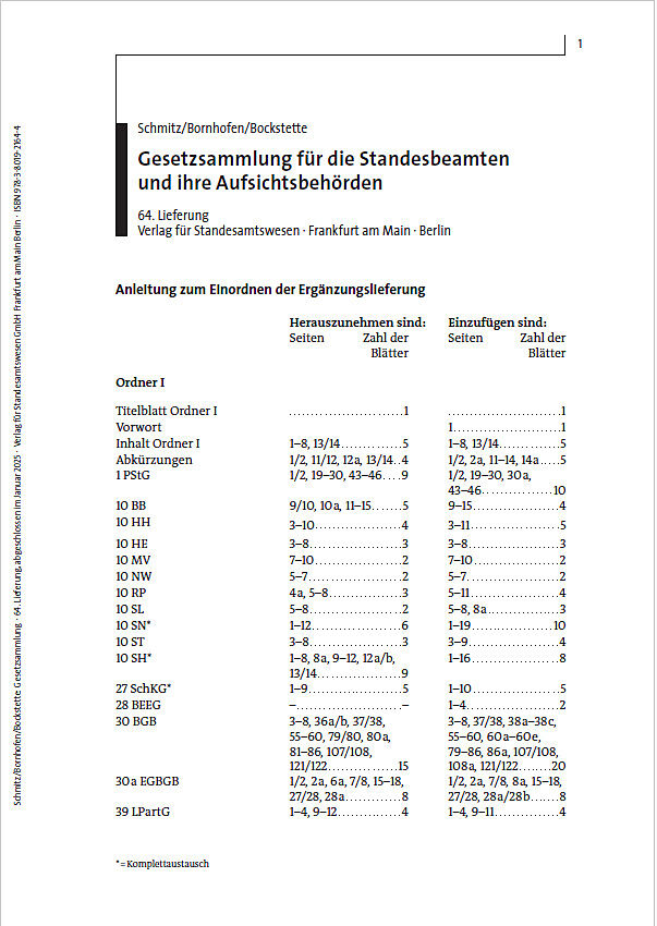 Die 64. Lieferung enthält alle Änderungen aufgrund neuer Vorschriften, die seit dem 1.11.2024 in Kraft getreten sind und bis einschließlich 1.5.2025 in Kraft treten werden. Dazu gehören unter anderem: Das Gesetz zur Änderung des Ehenamens- und Geburtsnamens...