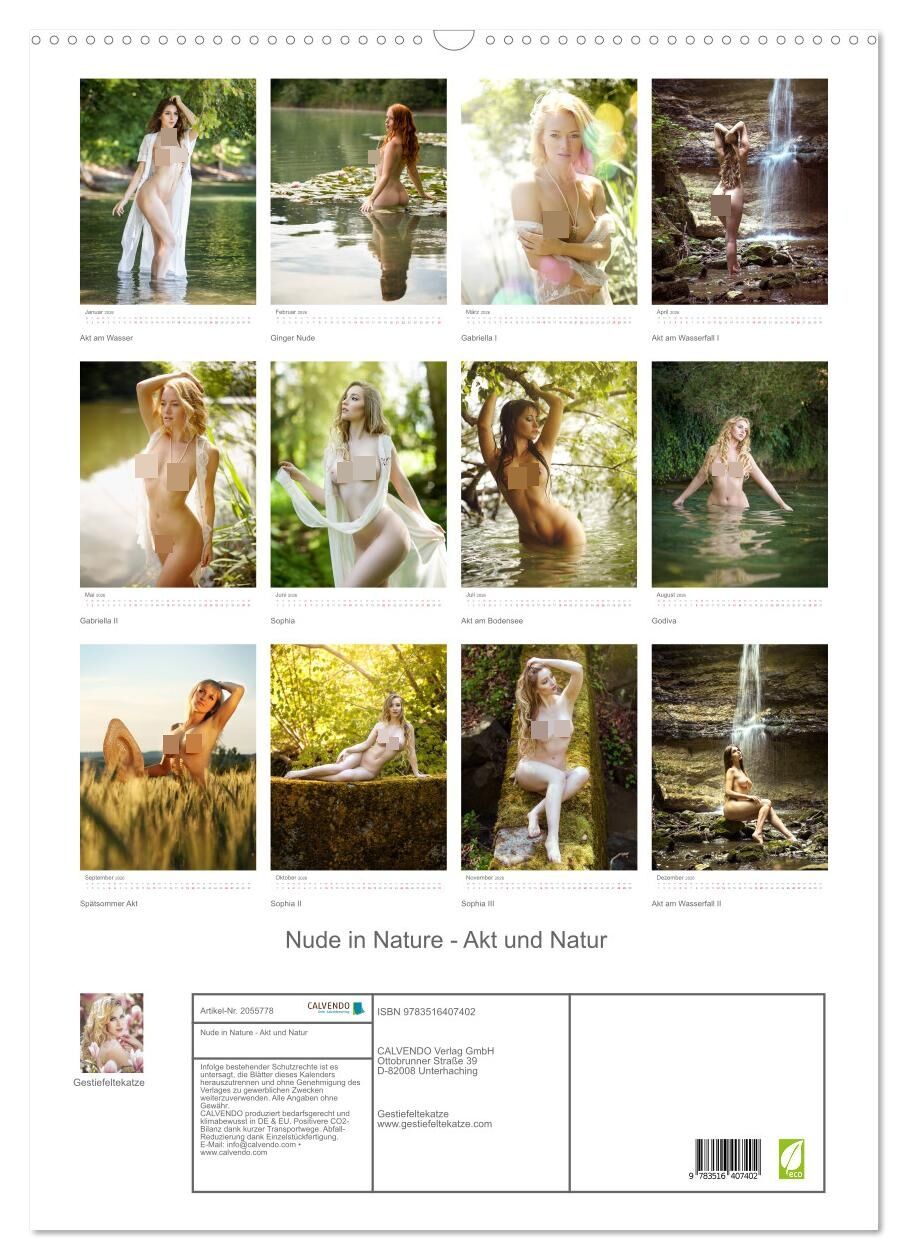 Dieser Kalender zeigt elegante, weibliche Akte in der Natur. Die fotografische Verbindung von Akt und Natur ergibt eine wunderschöne Symbiose der beiden Elemente. Die weibliche Schönheit wird dabei harmonisch in die Eleganz der Naturszenen eingebettet.