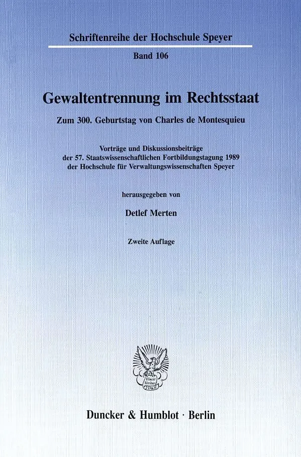 Daß dieser Tagungsband nach einigen Jahren vergriffen war, zeugt von der ungebrochenen Aktualität des Staatstheoretikers Montesquieu: Seine Gewaltenteilungslehre, die 1998 - zweihundertundfünfzig Jahre nach dem ersten Erscheinen des »De l'esprit des lois« - ei...