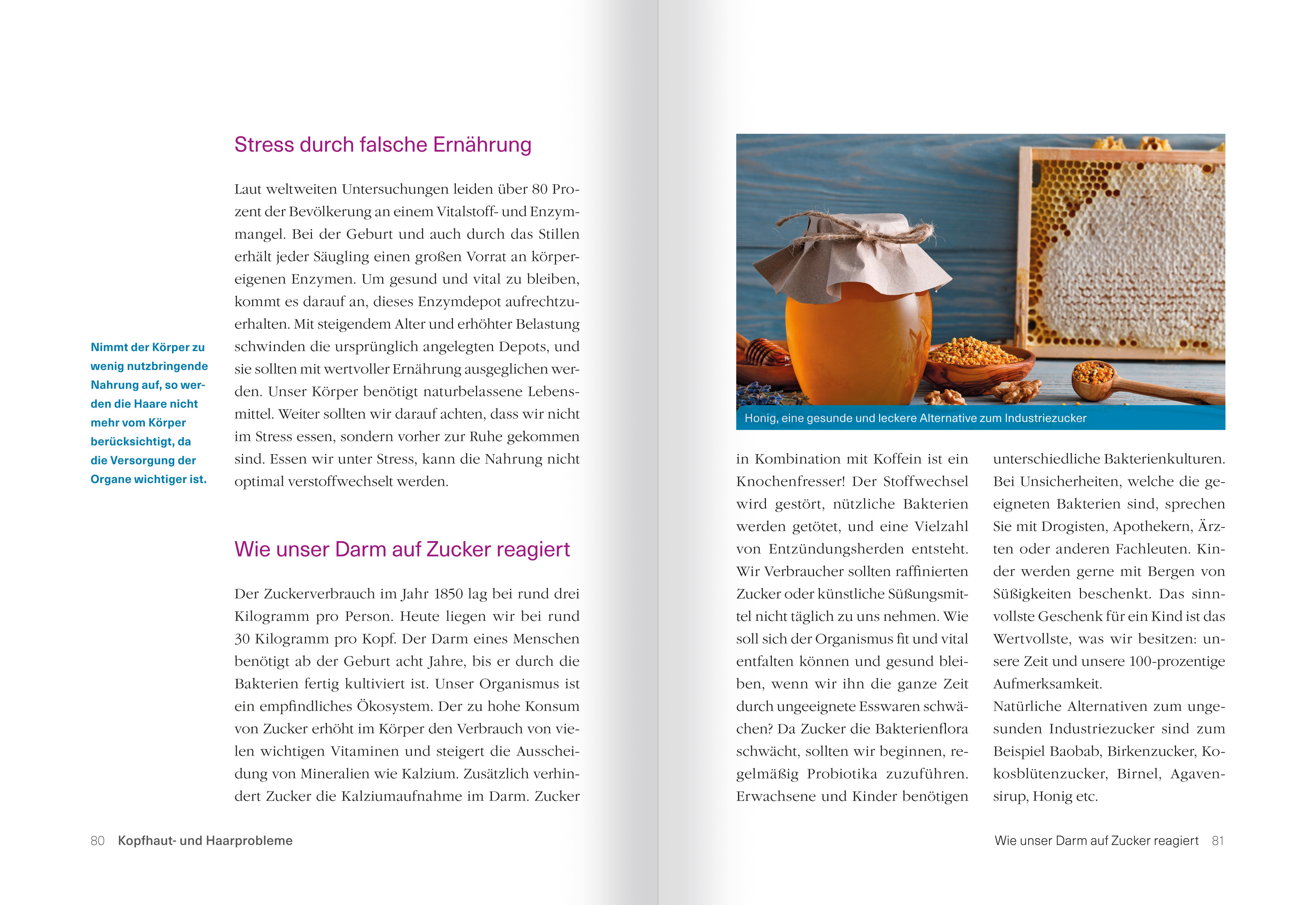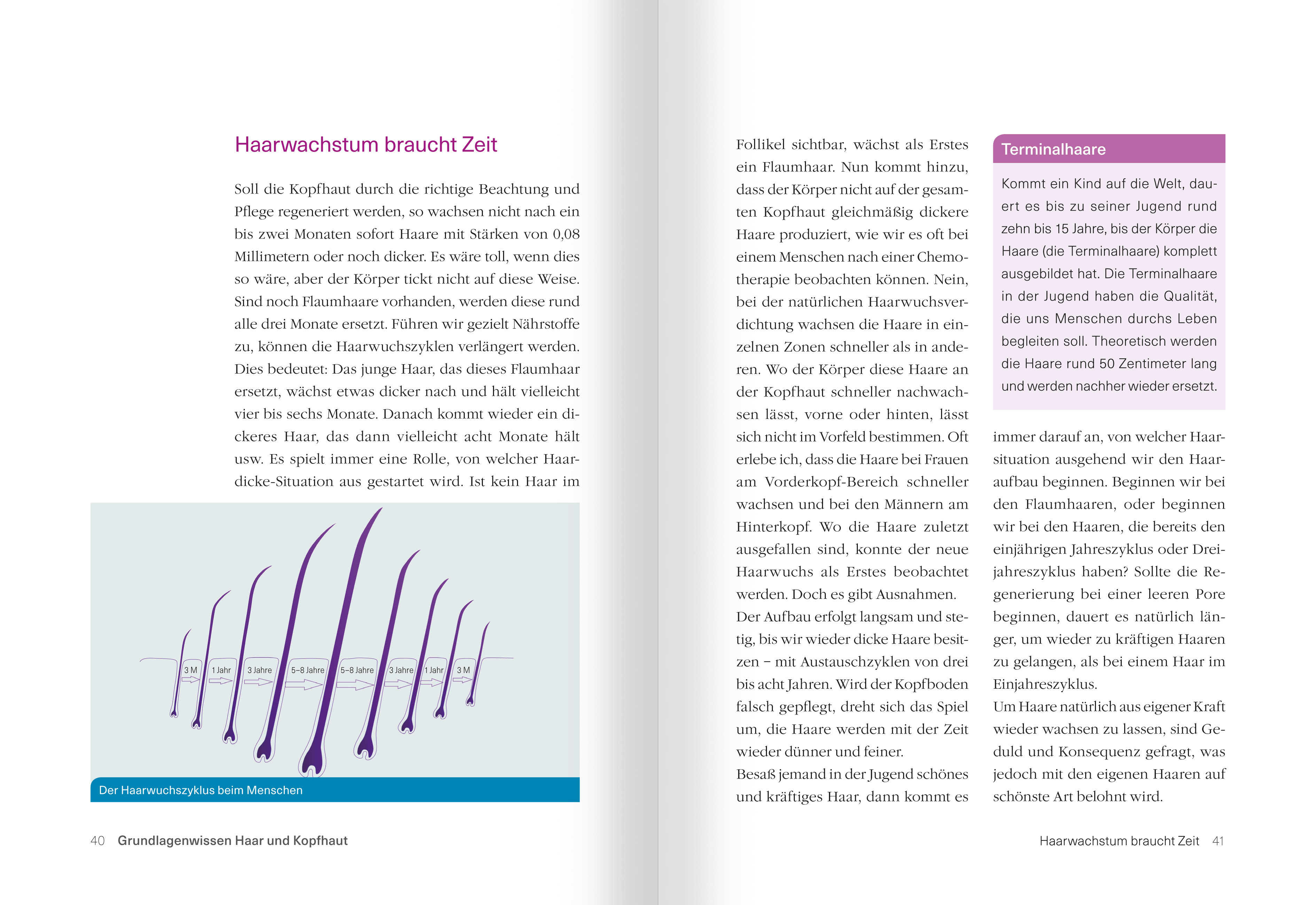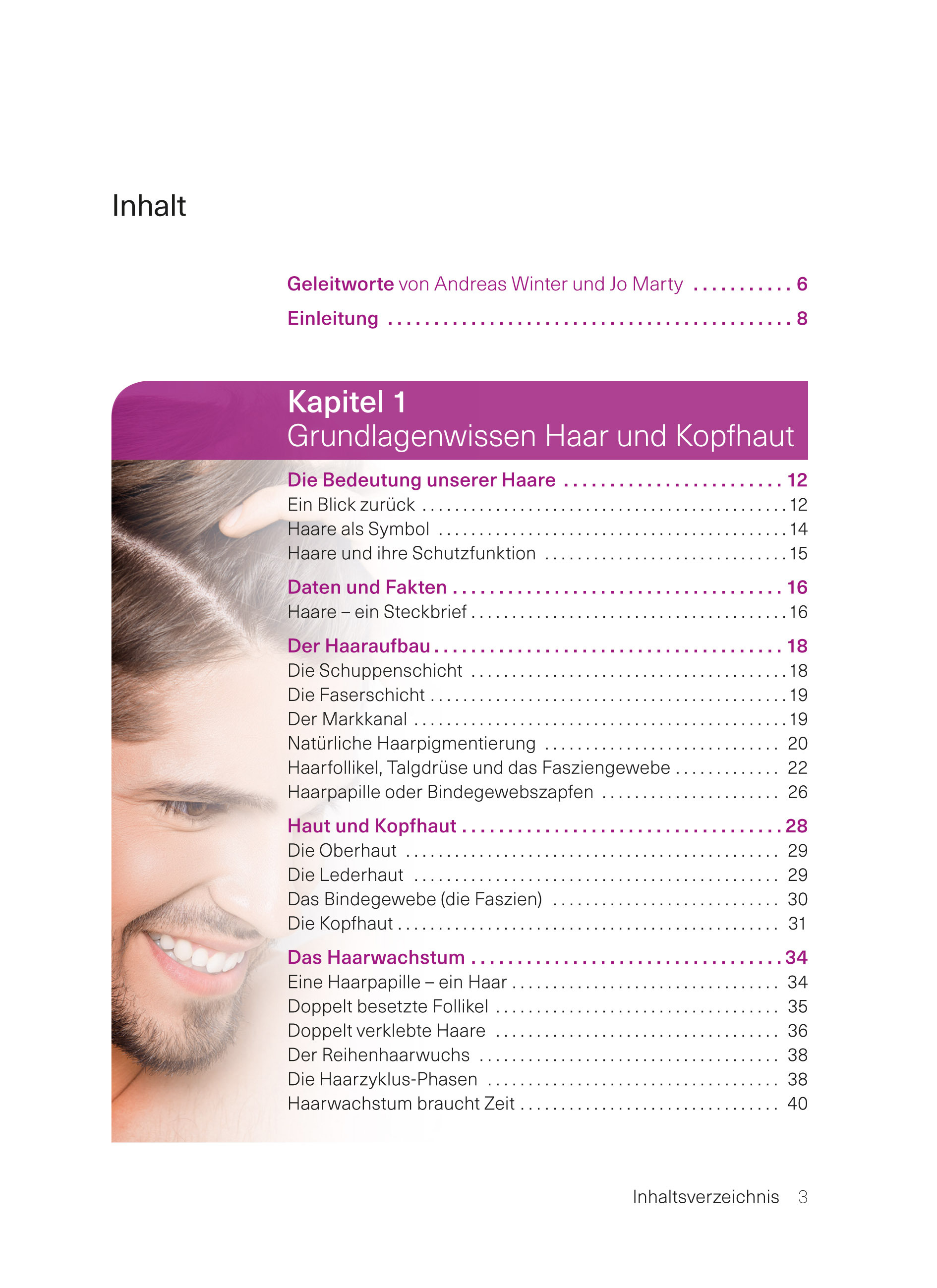 EINLEITUNG Liebe Leserin, lieber Leser, ich begrüße Sie auf der Reise zu gesunden, vitalen Haaren - entdecken Sie mit mir ihr Geheimnis! 2009 eröffnete ich eine Praxis für tiefenpsychologische Dienstleistungen. Menschen mit den unterschiedlichsten Anliegen kamen zu mir, und so wurde ich eines Tages einer Frau weiterempfohlen, die seitlich am Kopf keine Haare mehr hatte. Nach eineinhalb Jahren erfolgloser dermatologischer Hilfe galt sie als austherapiert und wurde mit den Worten entlassen: "Es ist nur ein Schönheitsfehler." Die Kundin war sichtlich verzweifelt und voller Trauer. Durch diese Frau kam ich erstmals in Kontakt mit dem Thema "Haarprobleme". Ehrlich gesagt wusste ich damals nicht, worauf ich mich eingelassen habe. Und doch ist es uns gelungen, dieses seitliche Haarloch von rund 15 Zentimetern innerhalb von eineinhalb Jahren zu schließen. Mein Erfolg hat sich rumgesprochen, und ich durfte zahlreiche tolle Erfahrungen bei Männern, Frauen und Jugendlichen in Sachen Kopfhaut- und Haarregeneration miterleben. Mein Antrieb ist es heute, die positiven Erfahrungen mit anderen Menschen zu teilen und ihnen Mut zu machen. Haare sterben nicht einfach so ab. Oder haben Sie schon einmal einen Menschen gesehen, bei dem ein Bein abstirbt oder ein Zahn - ohne ersichtlichen Grund? Stirbt am Körper etwas ab, wird es schwarz, haben Sie schon einmal eine abgestorbene schwarze Kopfhaut wahrgenommen? In den letzten sechs Jahren habe ich intensiv nach Zusammenhängen geforscht und konnte mich mit vielen Spezialisten unterhalten und Gedanken austauschen. Mein Ziel ist es, dieses gewonnene Fachwissen zu teilen und auch Friseure, die oft nur über geringes Wissen hinsichtlich geeigneter Kopfhautpflege verfügen, aufzuklären und zu sensibilisieren. Meine Reise der Forschung ist noch nicht zu Ende, doch sie ist so weit perfektioniert, dass wir, mein Team und ich, Menschen mit Haarproblemen effektiv und zuverlässig dabei helfen können, die eigenen Haare zurückzugewinnen. Keine Haarwurzel und kein Haarfollikel sind je abgestorben, wir haben lediglich vergessen, die Biologie und somit die Funktionen des Körpers in Bezug auf die Kopfhaut zu verstehen, Haare und Kopfhaut richtig zu pflegen und zu unterstützen. Erfahren Sie nicht nur, wie die Psyche die Haare beeinflusst oder was unsere Vorfahren über die Kopfhaare dachten, lernen Sie auch, wie sich unsere moderne Ernährung, die Umwelt und die Kosmetik langfristig auf die Haare auswirken. Erkennen wir die Zusammenhänge, ist es möglich, zu schönen und vitalen Haaren zurückzugelangen oder sie zu erhalten. Die Haarqualität in der Jugend ist unser Maßstab. Betrachten wir die Frisur eines Menschen genauer, so erkennen wir: Haare sind einfach enorm wichtig für jeden Einzelnen von uns. Die Hauptmerkmale einer Person, der Status der Gesundheit, Stress oder Ausgeglichenheit, all das lässt sich unkompliziert an Haarqualität und Frisur feststellen. Selbst drastische Lebensveränderungen werden oft mit einer radikalen neuen Frisur symbolisch nach außen getragen. Mit diesem Buch erhalten Sie Einblicke in die zahlreichen Ursachen, die zu Haarproblemen führen, und Sie finden Lösungswege zu vollen Haaren und somit zu neuer Lebensqualität.