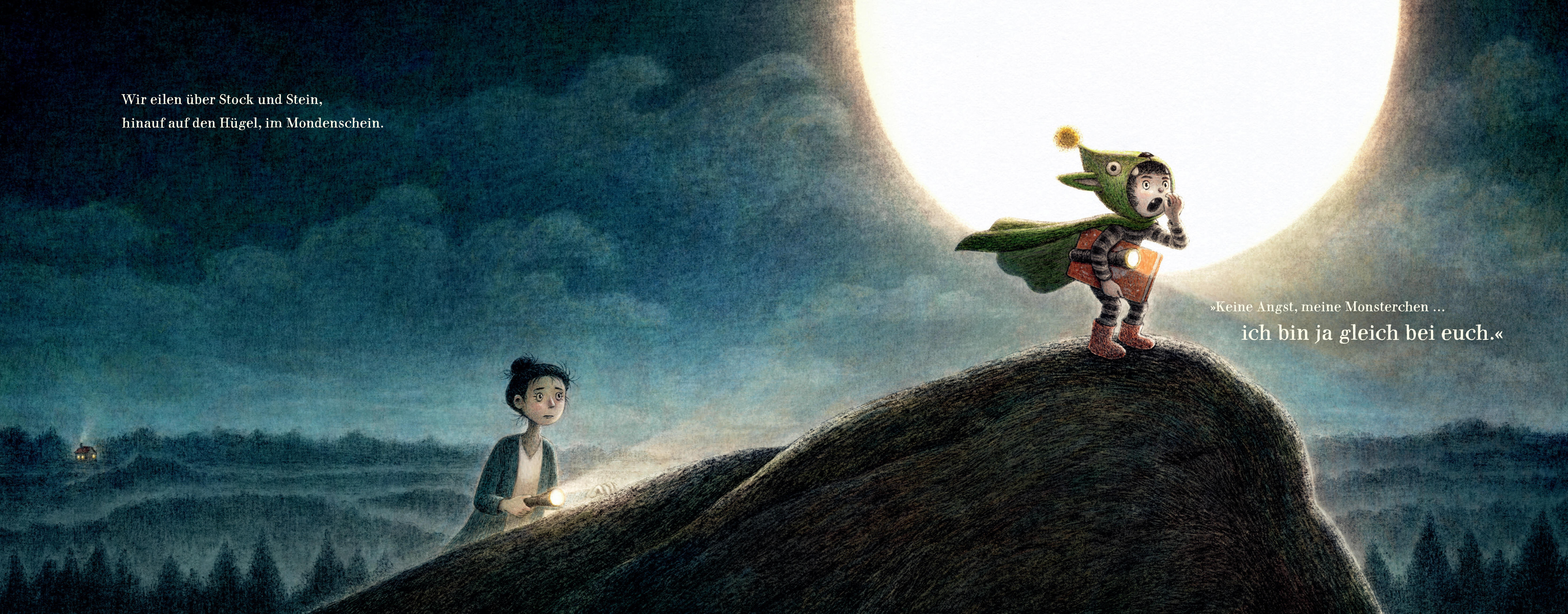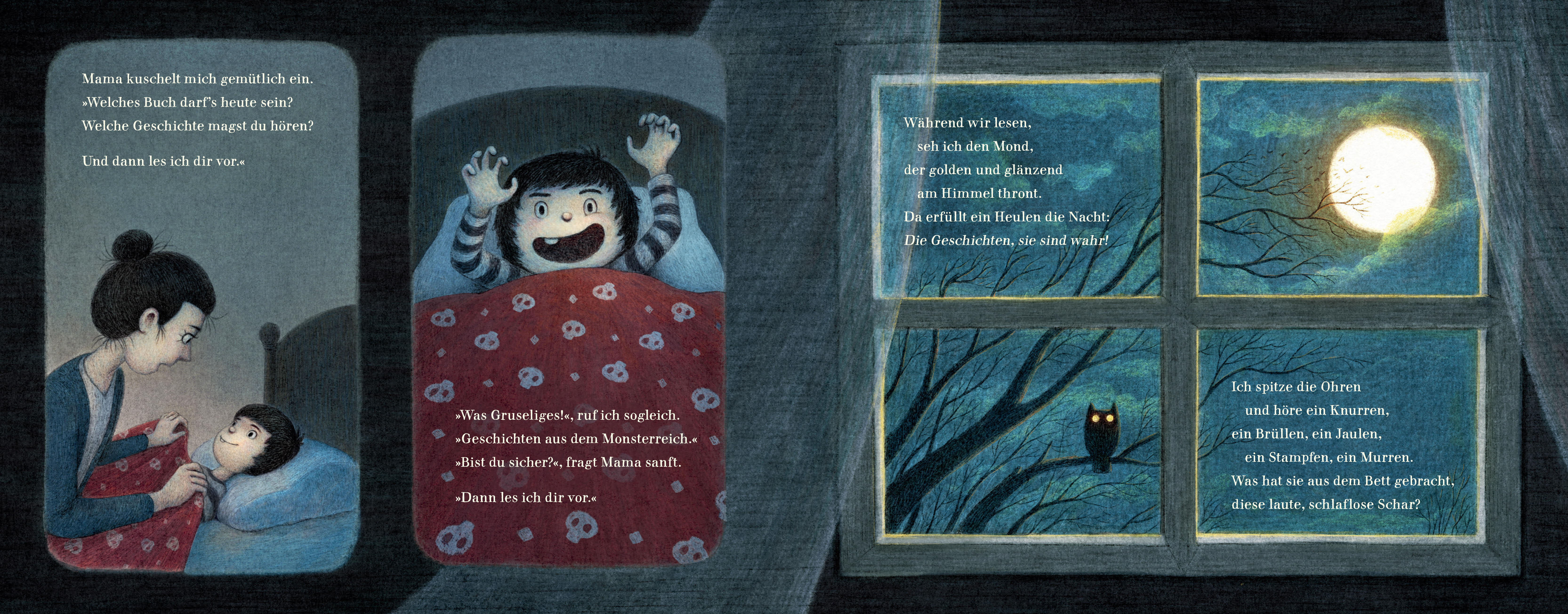 Ein Junge, der Gruselgeschichten über alles liebt, sorgt sich eines Abends, wer denn wohl all den Monstern da draußen eine Gutenachtgeschichte vorlesen wird? Wer bringt sie ins Bett? Kaum gedacht, weiß er auch schon, was zu tun ist. Nur mit einer Taschenlampe...