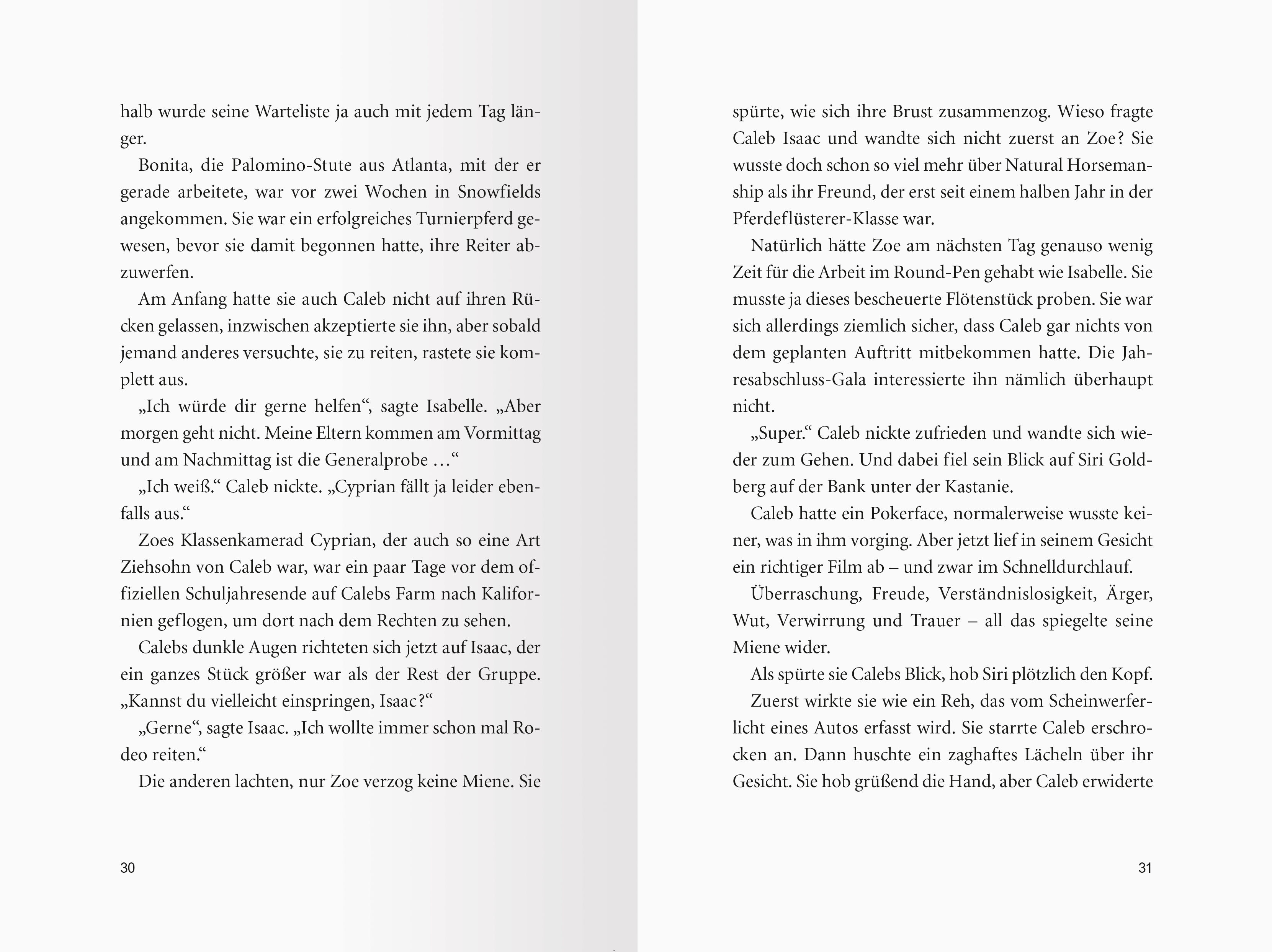 Im wilden Kanada steht ein weißes Schloss: Snowfields. Auf dem Internat werden die weltbesten Reiter ausgebildet und verletzte Pferdeseelen geheilt. Zoes Freund Isaac braucht ein neues Pferd für den Reitunterricht, denn seine Apfelschimmelstute Samantha ist de...