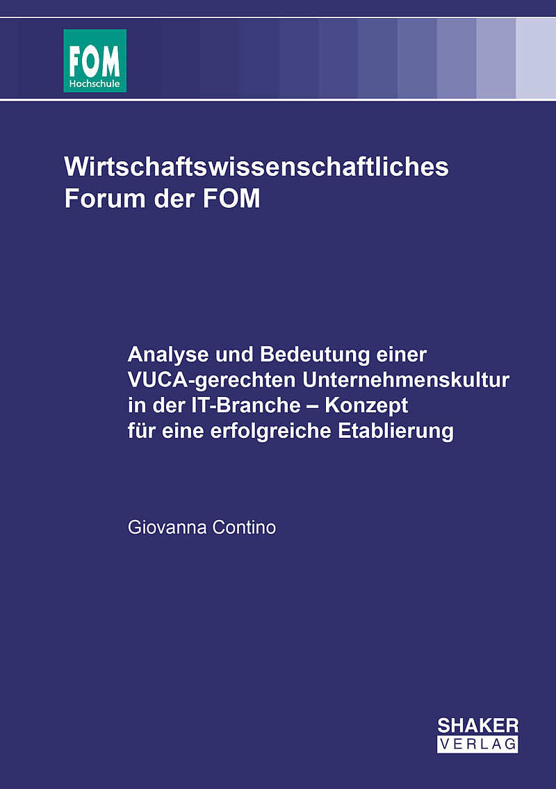 Das vorliegende Fachbuch beleuchtet und stellt bestehende Unternehmenskulturen in der IT-Branche gegenüber und zeigt die Bedeutung einer VUCA-gerechten Kultur für Unternehmen, speziell aus der IT-Branche, auf. Es wird analysiert, welche Komponenten eine solche...