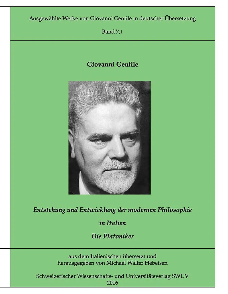 Ausgewählte Werke von Giovanni Gentile in deutscher Übersetzung", hrsg. von Michael Walter Hebeisen. Originalausgabe: Origini della filosofia contemporanea in Italia - I platonici, Firenze: Sansoni. Autorentext Giovanni Gentile wurde am 30. Mai 1875 auf Sizili...