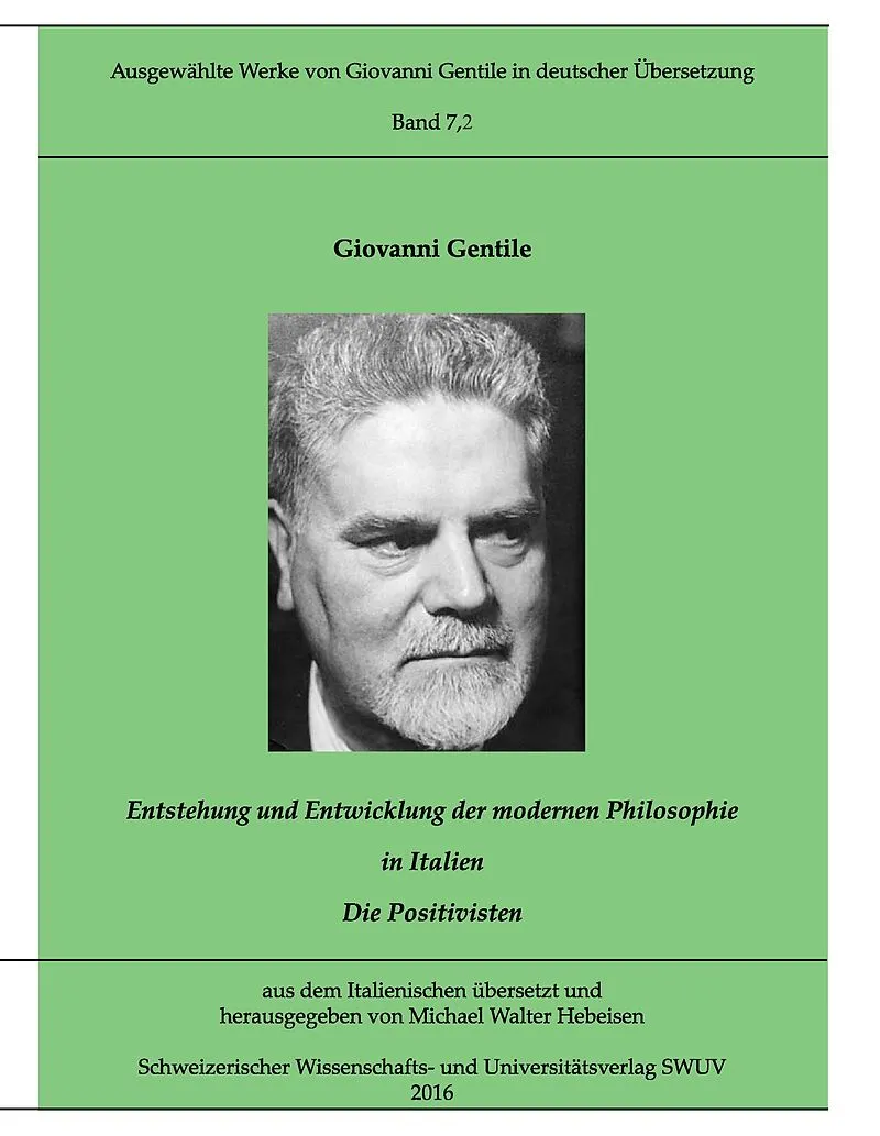 Ausgewählte Werke von Giovanni Gentile in deutscher Übersetzung", hrsg. von Michael Walter Hebeisen. Originalausgabe: Origini della filosofia contemporanea in Italia - I positivisti, Firenze: Sansoni. Autorentext Giovanni Gentile wurde am 30. Mai 1875 auf Sizi...