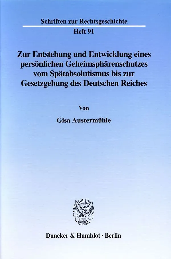 Entstehung und Entwicklung der gegenüber einem Ausforschen durch den Staat rechtlich geschützten persönlich-privaten Geheimsphäre sind bislang nur teilweise aufgeklärt. Gisa Austermühle beleuchtet die öffentlich-rechtlichen Aspekte eines persönlichen Geheimsph...