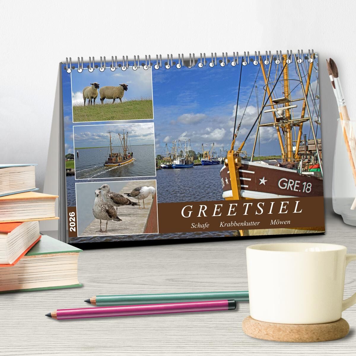 GREETSIEL - Schafe - Krabbenkutter - Möwen (Tischkalender 2026 DIN A5 quer), CALVENDO Monatskalender