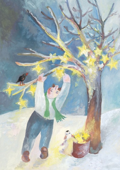Ein älterer Mann sitzt alleine in seinem Haus und erinnert sich, wie Weihnachten früher war. Mit seinen Geschwistern hatte er goldene Sterne ausgeschnitten und aufgehängt, damit das Christkind den Weg zu ihnen fand. Doch seither ist die Stadt gewachsen und üb...