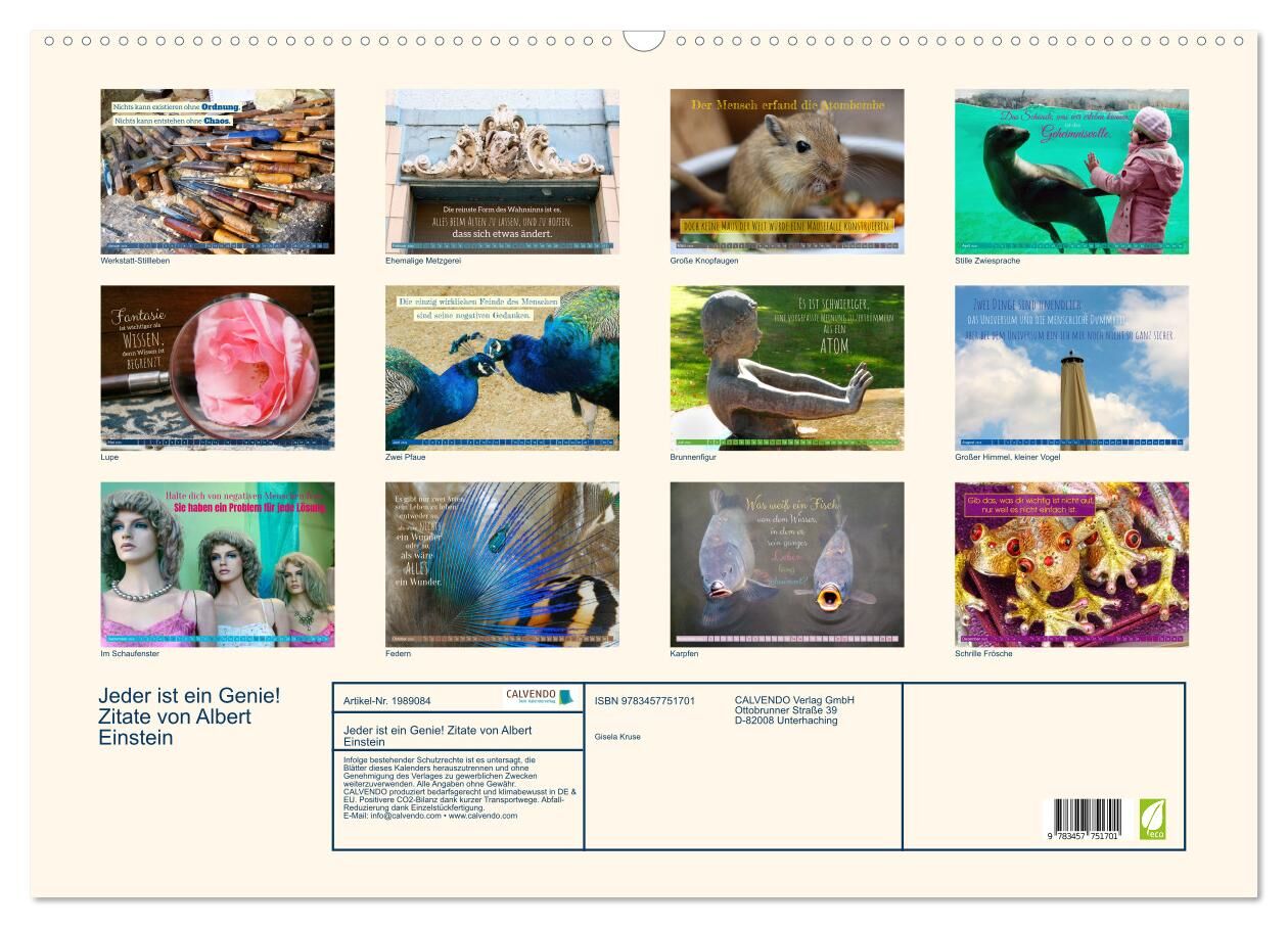 Jeder ist ein Genie! Zitate von Albert Einstein (Wandkalender 2026 DIN A2 quer), CALVENDO Monatskalender