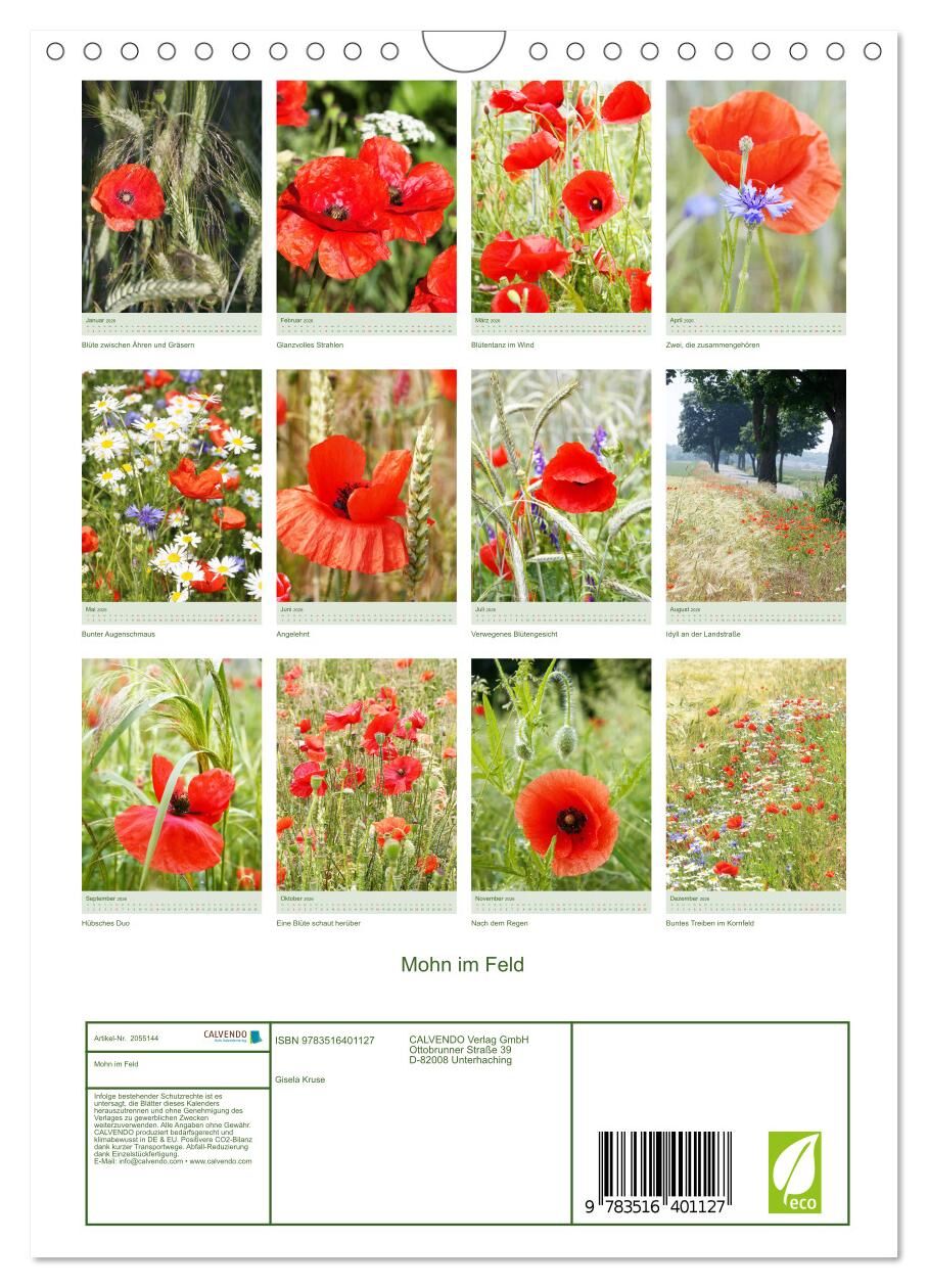 Mohn im Feld (Wandkalender 2026 DIN A4 hoch), CALVENDO Monatskalender