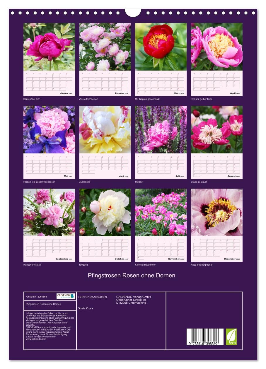 Pfingstrosen Rosen ohne Dornen (Wandkalender 2026 DIN A3 hoch), CALVENDO Monatskalender