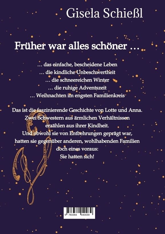 Früher war alles schöner das einfache, bescheidene Leben die kindliche Unbeschwertheit die schneereichen Winter die ruhige Adventszeit Weihnachten im engsten Familienkreis Das ist die faszinierende Geschichte von Lotte und Anna. Zwei Schwestern aus ärmlichen V...