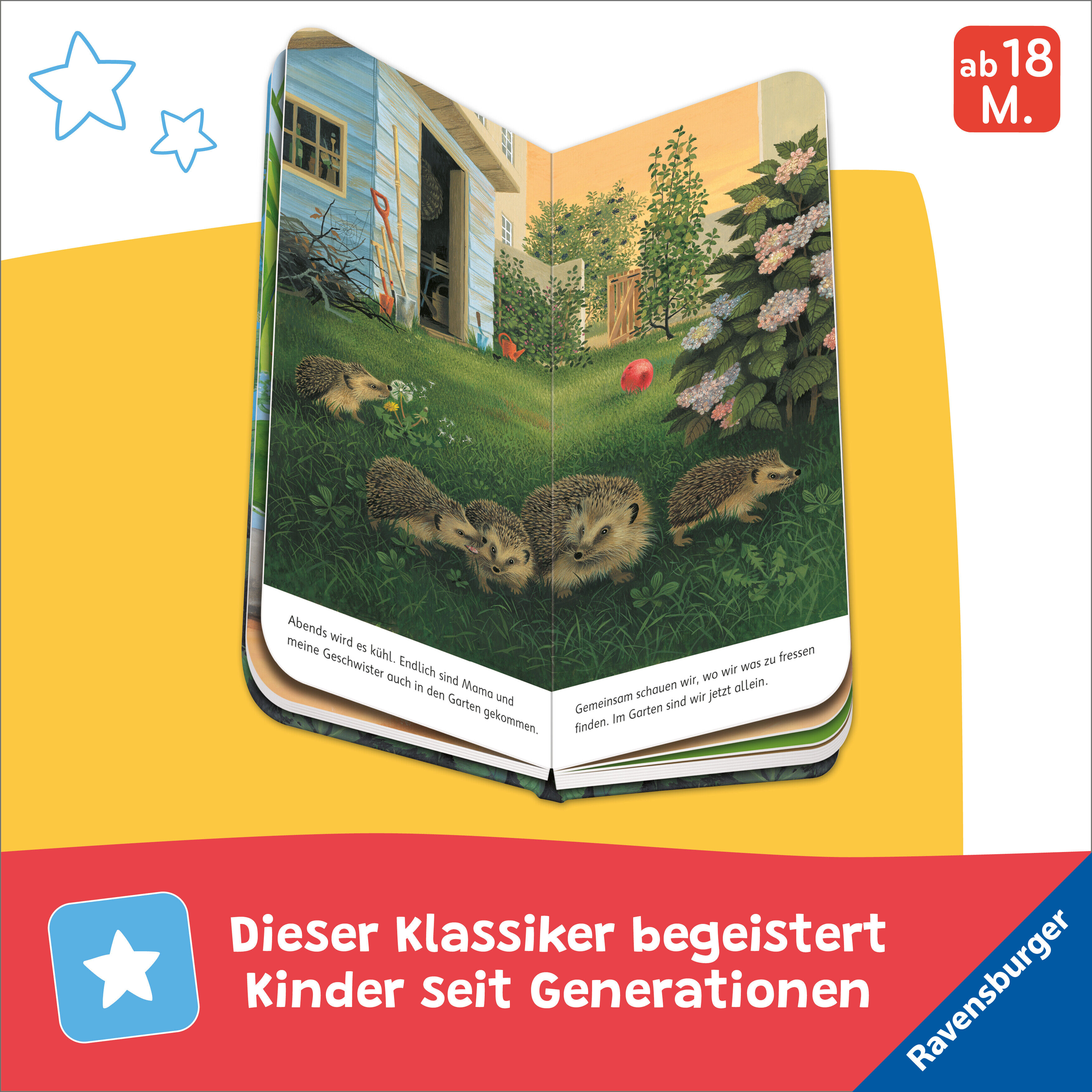 Liebevolle Vorlesegeschichte vom Igelkind Zusammen mit seinen Geschwistern wohnt der kleine Igel unter einem Holzstoß im Garten. Neugierig macht er sich alleine auf eine Entdeckungsreise und erlebt spannende Abenteuer. Gegen Abend kommt auch Mama in den Garten...