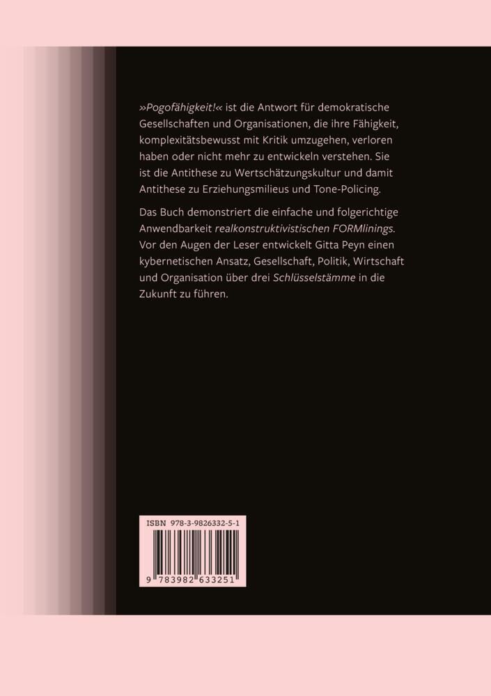"Pogofähigkeit!" ist die Antwort für demokratische Gesellschaften und Organisationen, die ihre Fähigkeit, komplexitätsbewusst mit Kritik umzugehen, verloren haben oder nicht mehr zu entwickeln verstehen. Sie ist die Antithese zu Wertschätzungskultur und damit ...