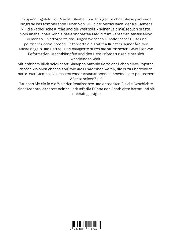 Im Spannungsfeld von Macht, Glauben und Intrigen zeichnet diese packende Biografie das faszinierende Leben von Giulio de' Medici nach, der als Clemens VII. die katholische Kirche und die Weltpolitik seiner Zeit maßgeblich prägte. Vom unehelichen Sohn eines erm...