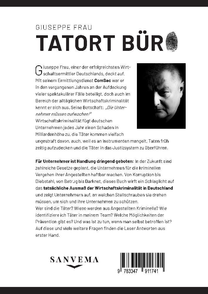 Giuseppe Frau, einer der erfolgreichsten Wirtschaftsermittler Deutschlands, deckt auf. Mit seinem Ermittlungsdienst ComSec war er in den vergangenen Jahren an der Aufdeckung vieler spektakulärer Fälle beteiligt, doch auch im Bereich der alltäglichen Wirtschaft...