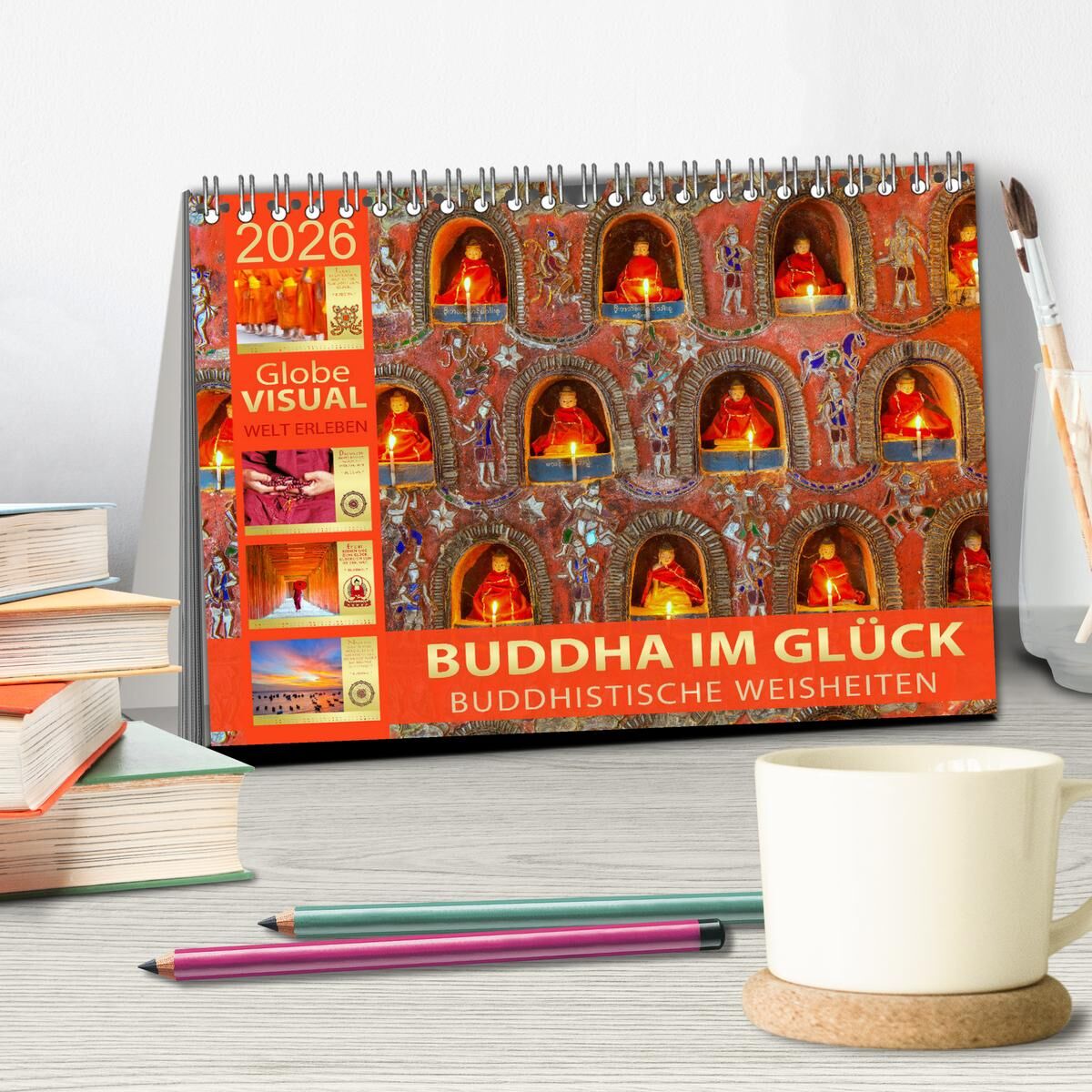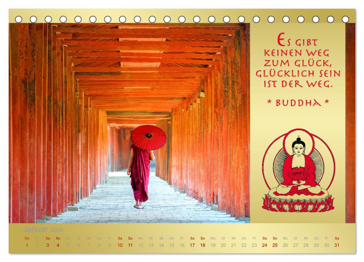 BUDDHA IM GLÜCK - Buddhistische Weisheiten (Tischkalender 2026 DIN A5 quer), CALVENDO Monatskalender