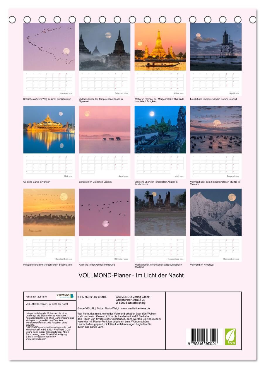 Wer kennt das nicht, wenn der Vollmond erhaben über den Wolken steht und sein diffuses Licht in die Landschaft wirft? Sie lieben den Hauch von Mystik eines Vollmondes, dann werden Sie von diesem Kalender mit Planer-Funktion begeistert sein. Wunderschöne Landsc...